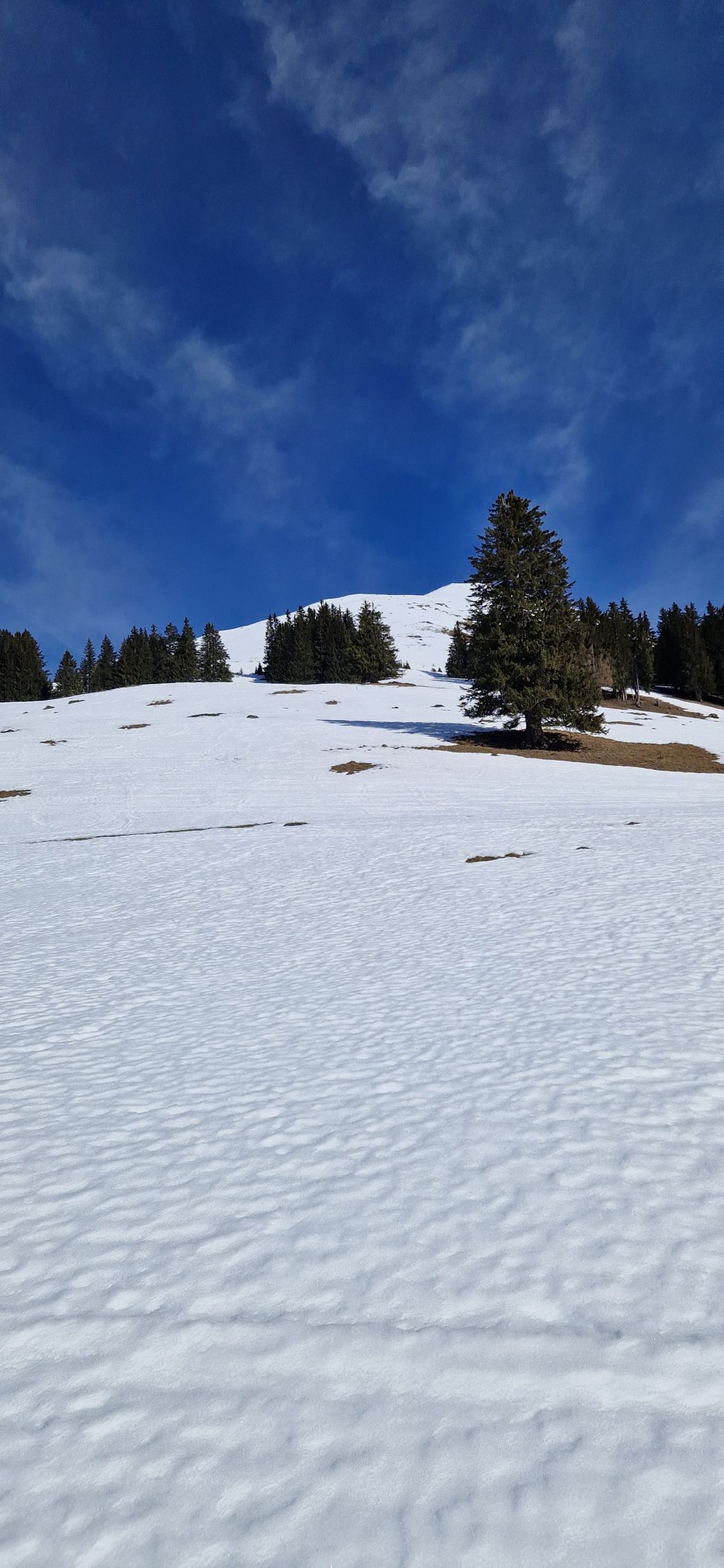 Start um 10:45 beim Parkplatz bei +6 Grad, Abfahrt Gipfel um ca. 13:30 bei herrlichen Sulzbedingungen.