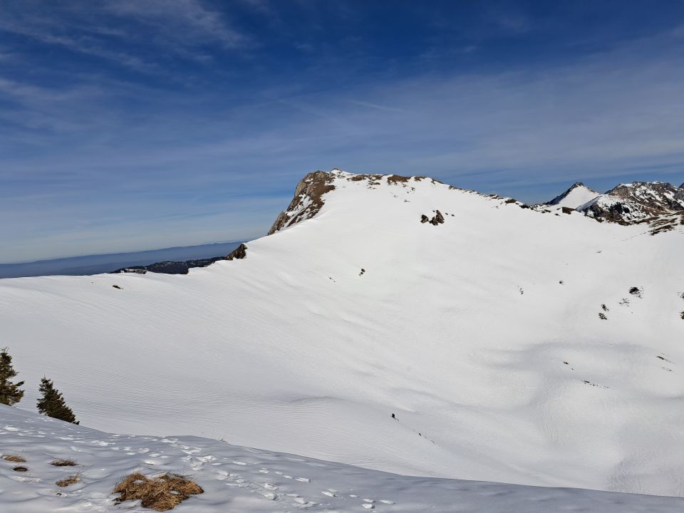 Gegenaufstieg über Mutti 1911m zu P.1987 hat sich noch gelohnt da die Abfahrt bis Chänelpass nochmals schönsten Sulz anbot.