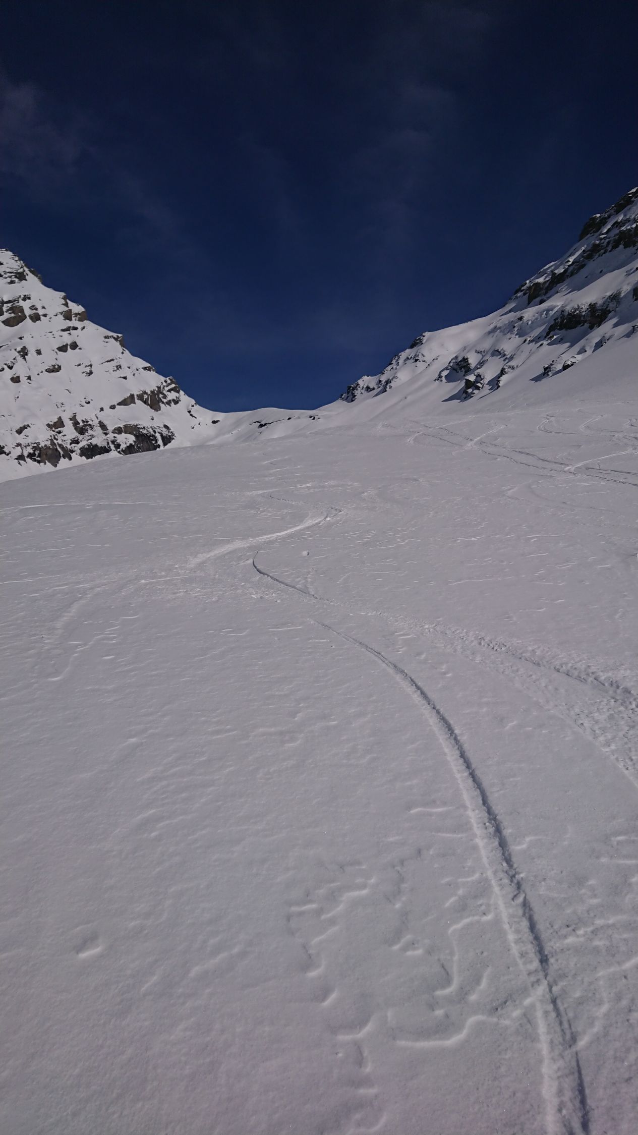 Von Lötschenpasshütte gute Spur bis Gizzifurggu. Abfahrt obeter Teil nach Leukerbad Pulver, dann Fruchharsch und unten Sulz. Im mittleren Teil teileeise eisig. Fahrbahr bis nach Leukerbad auf dem Weg.