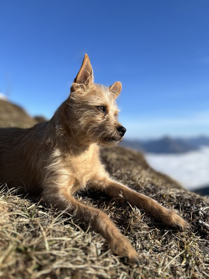 Ich liebe es mit meinem kaukasischen hasenhund und Assistenzhund unterwegs zu sein. Ein wunderbarer Ort hier und wir werden mit einem sonnigen Wintertag mit kaum Schnee beglückt. Nun wandern wir weiter und lassen den Bergdohlen ihr Reich…