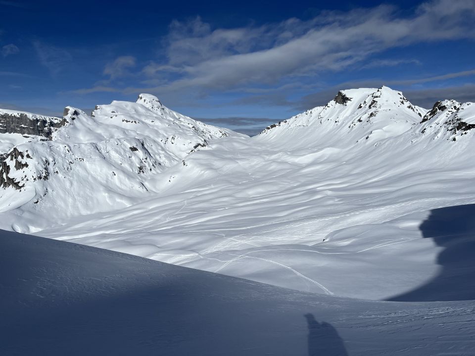 ältere lawinenkegel in der Engi, gut zu umgehen, oben raus traumhafte Verhältnisse (Pulver in den Schatthängen) Richtung Partnun viel verfahren aber besser als gedacht leicht angesulzt