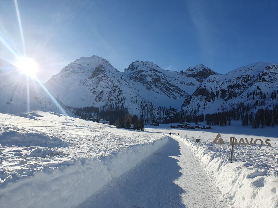 Der Bus ist mir in Davos Dischma Teufi vor der Nase abgefahren (40 Minuten Skiabfahrt vom Gipfel waren wegen dem sich langziehendem Dischma Tal doch zu wenig). Darum bin ich auf der Langlaufloipe auf westlicher Seitenstrasse weiter hinab, mal stossend, mal fliessend, mal mit Skatingtechnik bis Davos Dorf gekommen.