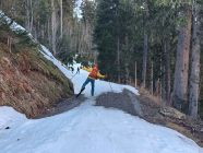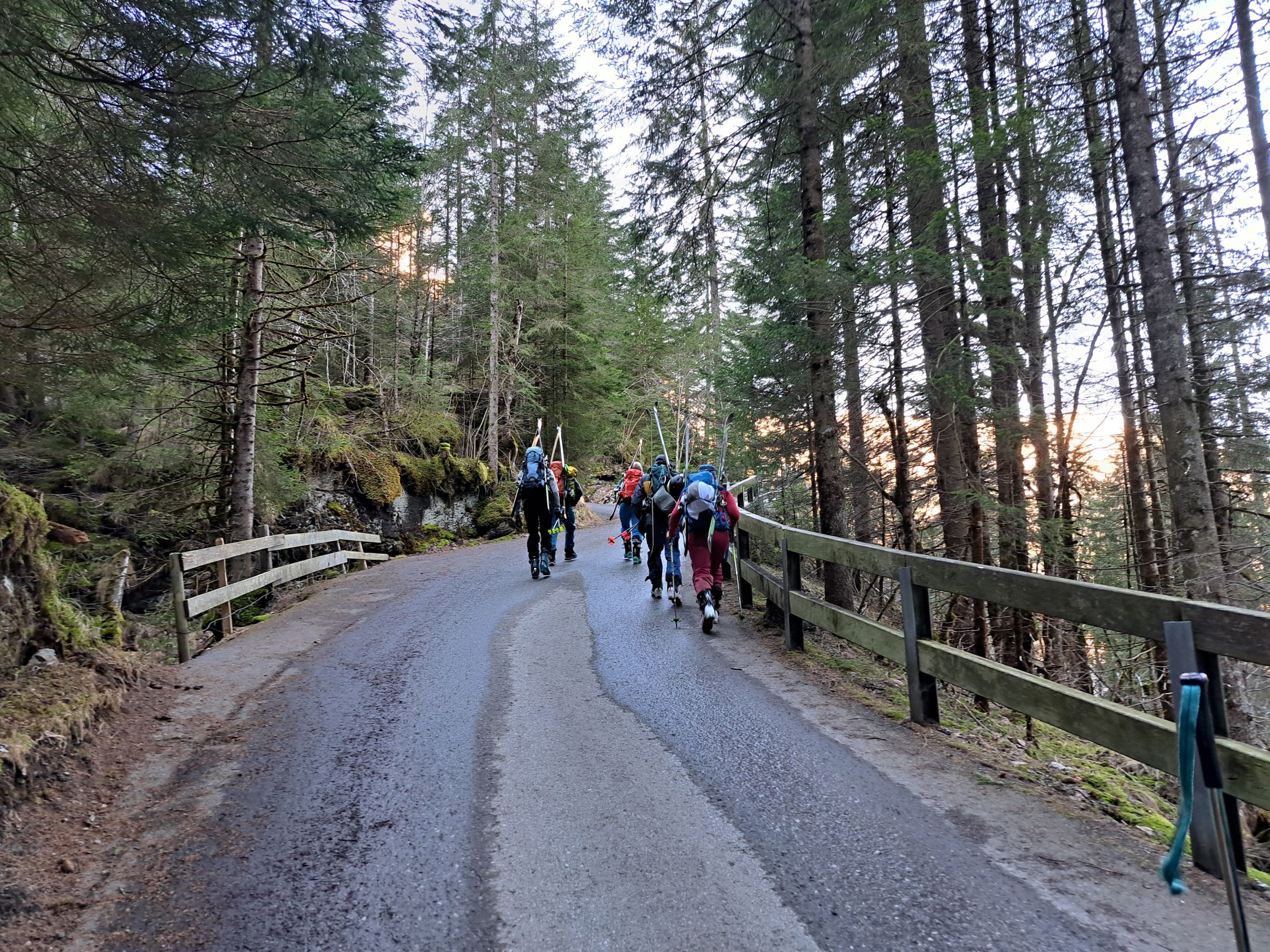 Die Strasse vom Parkplatz Tschingel zur Griesalp ist fast durchgehend trocken und schneefrei. Nur die letzten kleinen Eisflächen bedingen minimale Vorsicht.