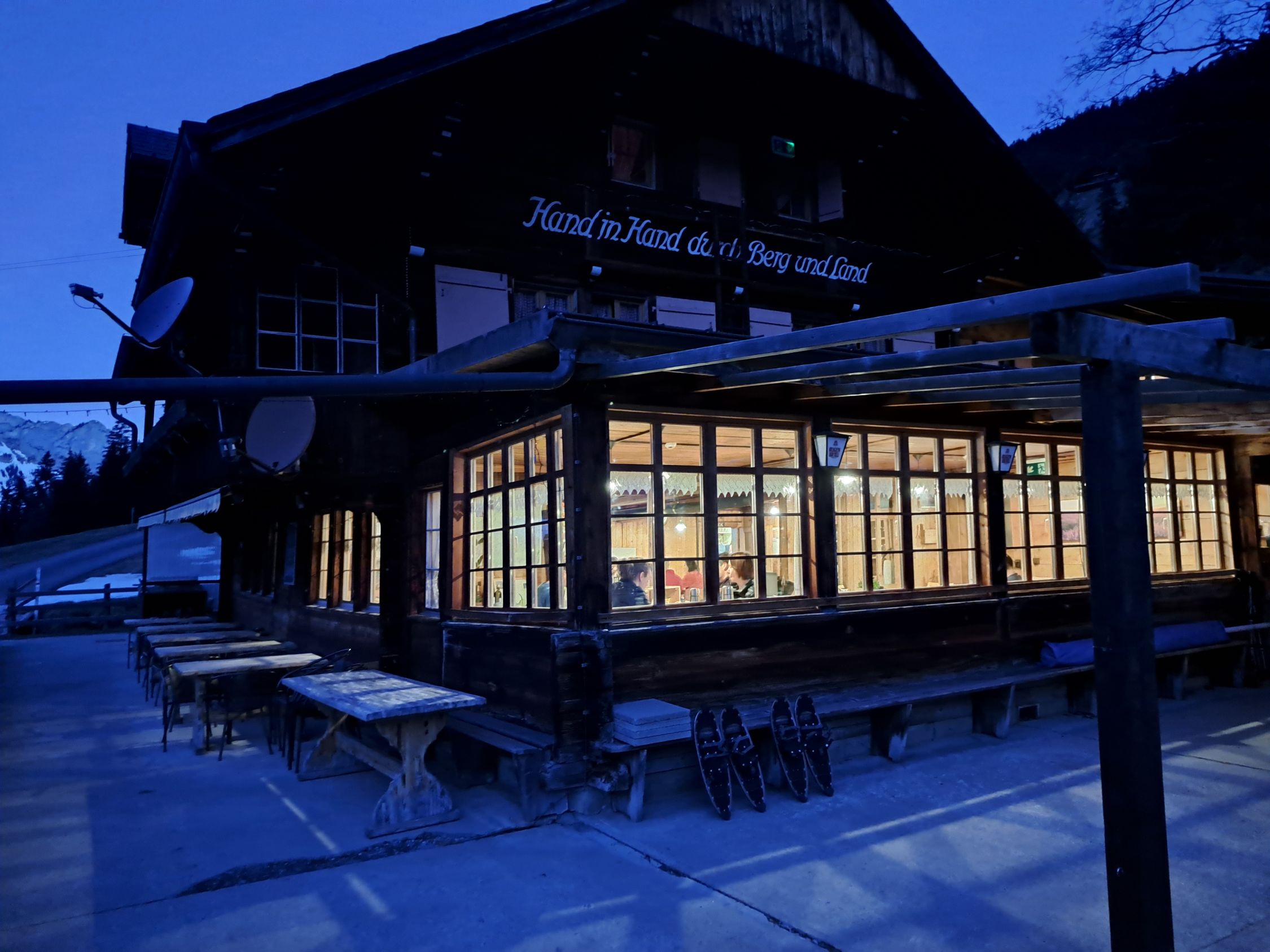 Ab der Griesalp zuerst dünne Schneedecke auf der Strasse Richtung Dünde Mittelberg. Ab etwa 1600 m genügend, meist harter und recht holpriger Schnee.