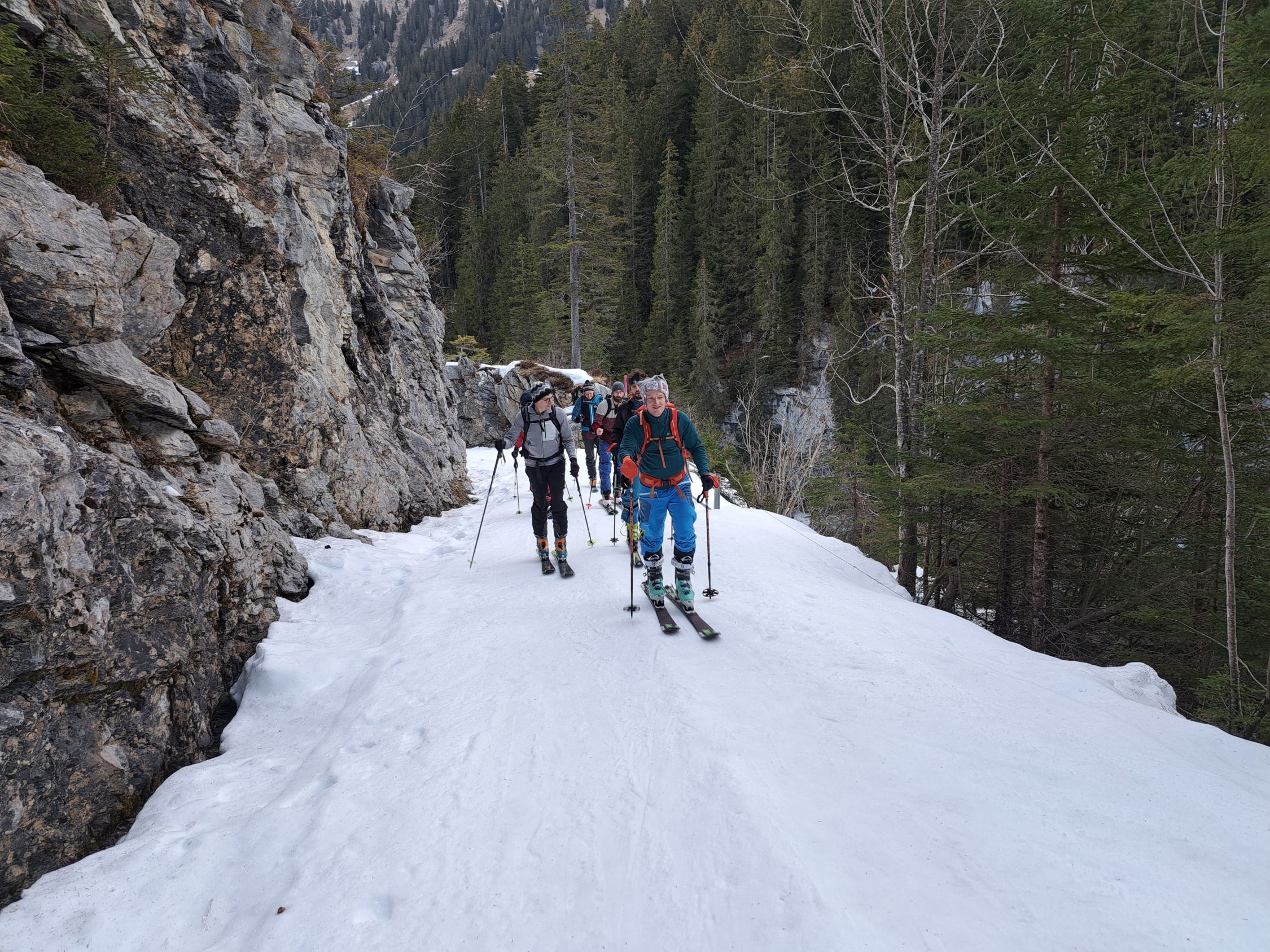 Wunderschöner Aufstieg in vielfältigen Geländekammern. Harscheisen sind unterhalb und bei der Dündenegg hilfreich.