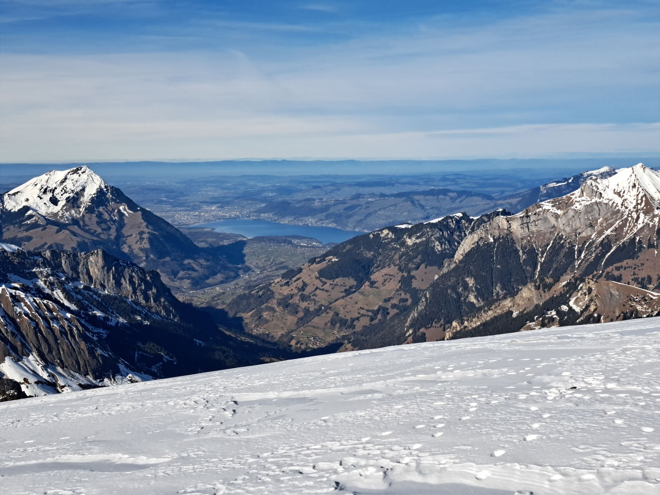 warmes Wetter, kein Wind, harter Schnee.