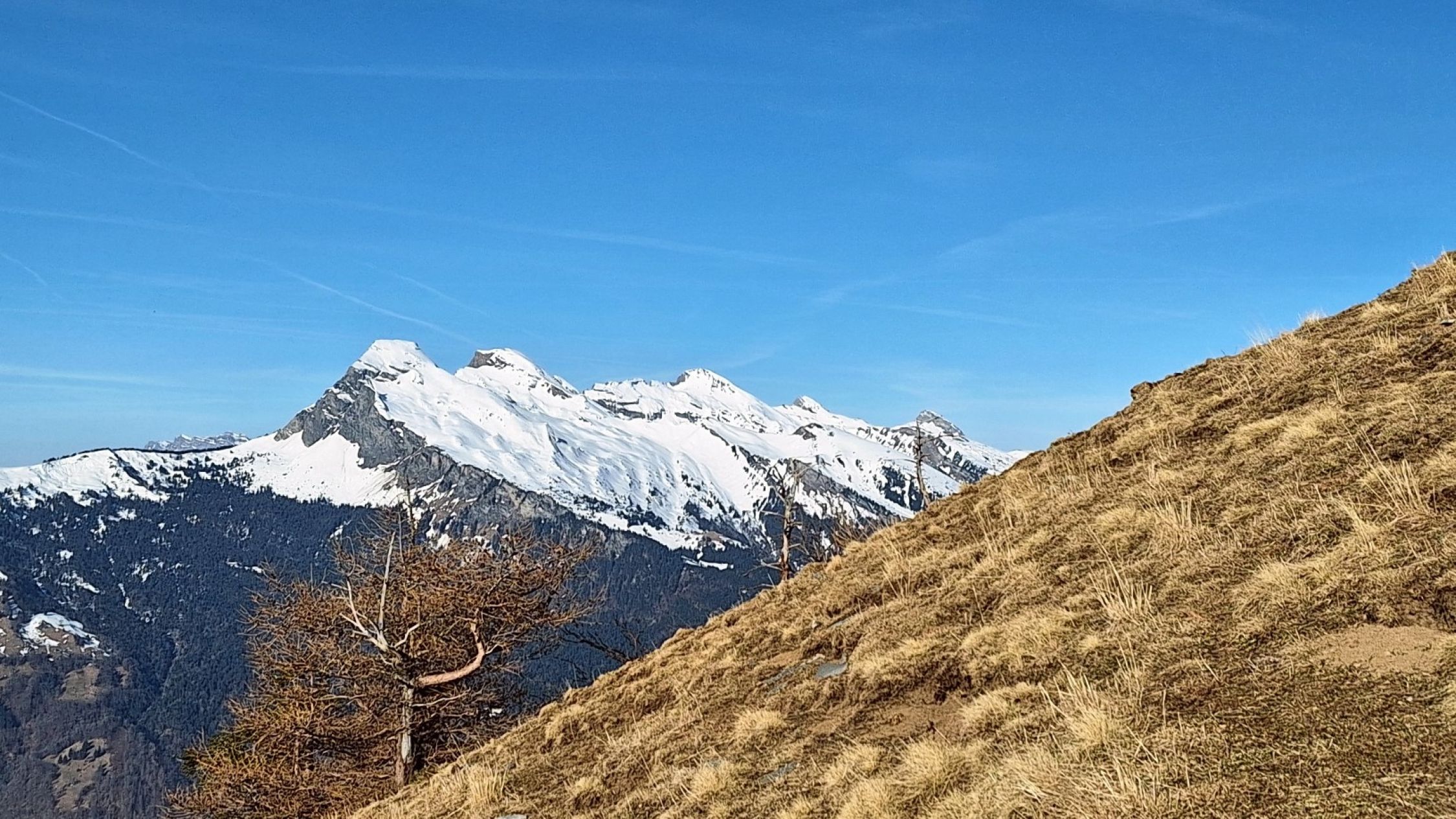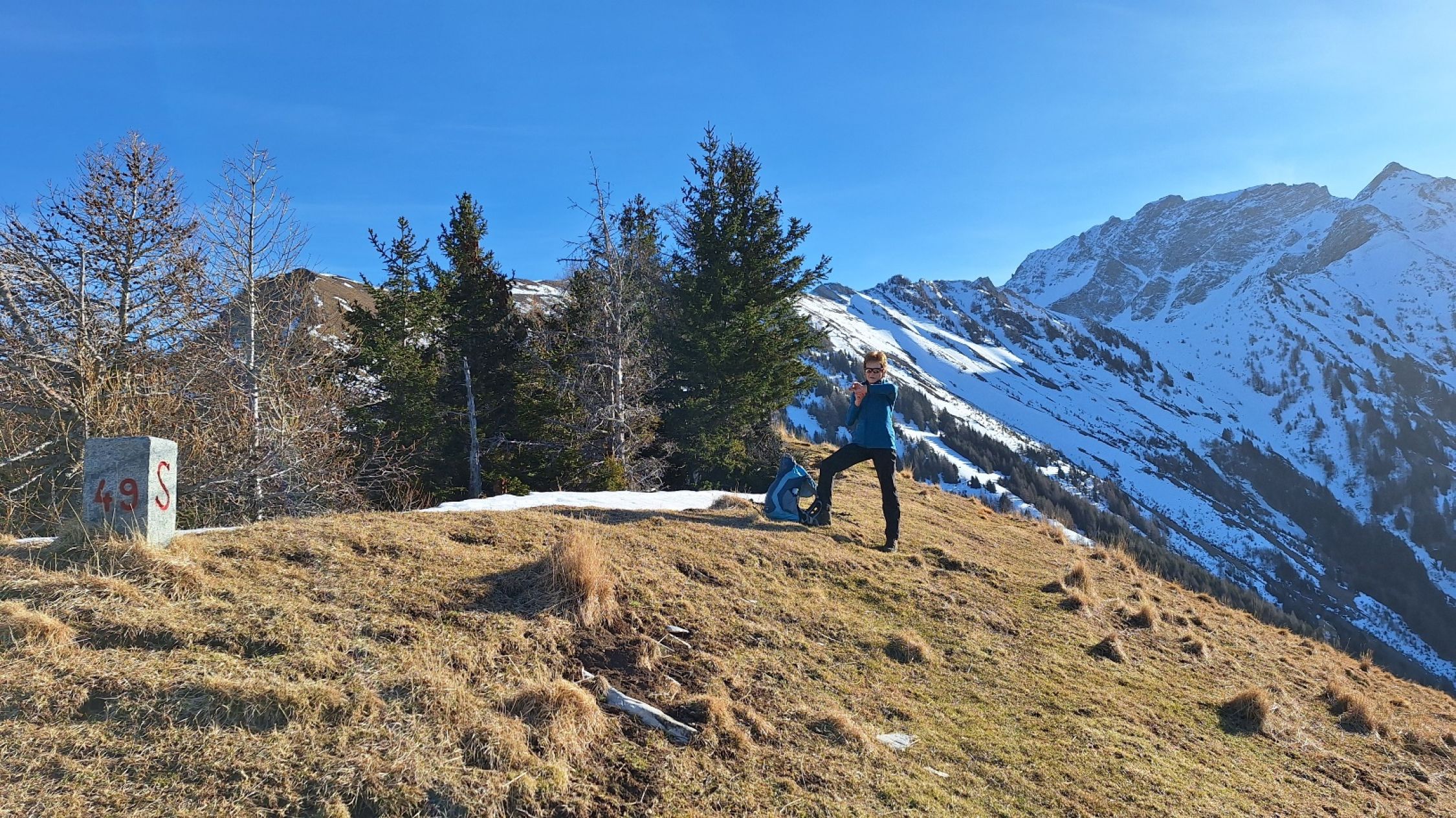 Bei plus 4 Grad sind wir gestartet. Mit Ausnahme einer ca. 100 m langen Schneepassage unterhalb Matan war die Route trocken. Im Schatten des Falknismassivs erreichten wir erst auf Matan sonniges Gelände. Die Verhältnisse können als frühlingshaft bezeichnet werden. Kein Wind, gute Fernsicht am Gipfel bis zum Bodensee hinaus und in den Oberhalbstein.