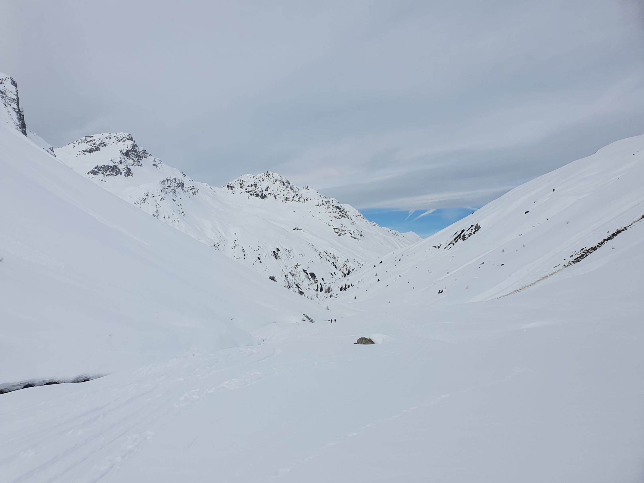 Heute ein paar Leute in Richtung Leidhorn und die Gruppe zum Sattelhorn gesichtet. Zudem ist eine Gruppe via Ducan Fürggeli nach Sertig Dorf abgefahren (beim Start in Sertig Dorf kurz getroffen).