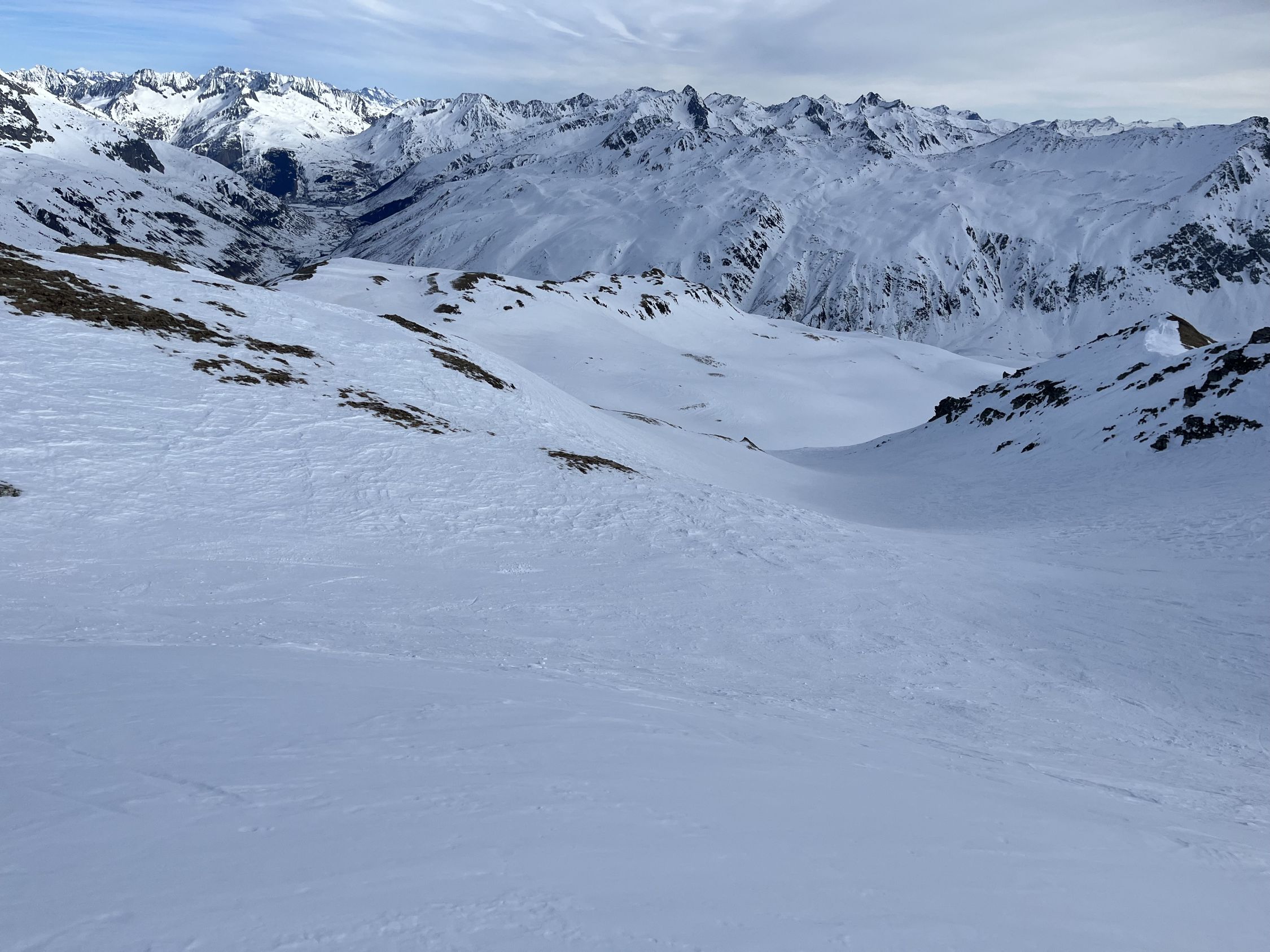 Start um 08.20 bei der Dampfbahn in Realp. Ab dort auch Schnee auf dem Weg. Aufstiegsspur ist hart. Harscheisen können hilfreich sein. Abfahrt harter Schnee, Pisten ähnlich, aber gut zu fahren.