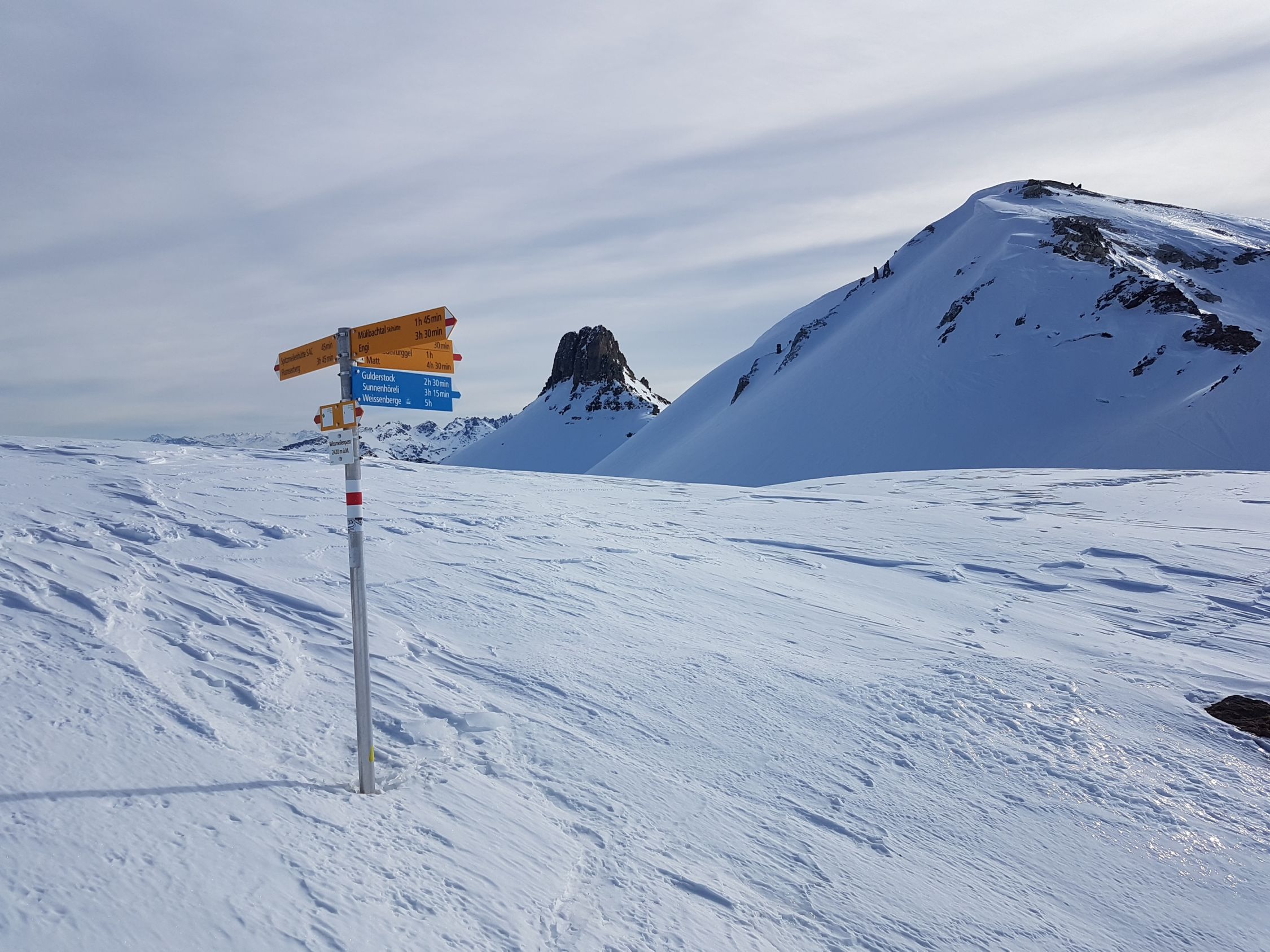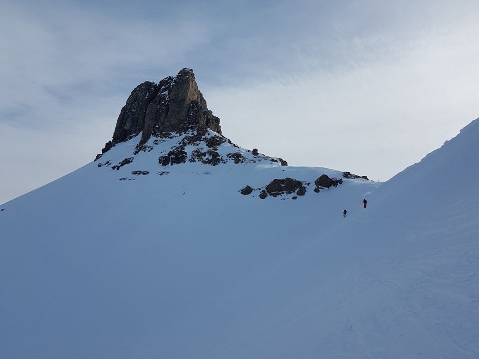 Den Wissmeilengrat habe ich ostseitig umfahren. Der Grat ist fälschlicherweise als Skitour in der Karte eingezeichnet. Dazu benötigt man Steigeisen und Pickel. Keiner hat's gespurt.