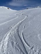 Machbar, wenn man bedenkt, dass wir die Ski über rund 300m hochgetragen haben. Gut, weil wir bis auf ca 50m Distanz alles abfahren konnten.