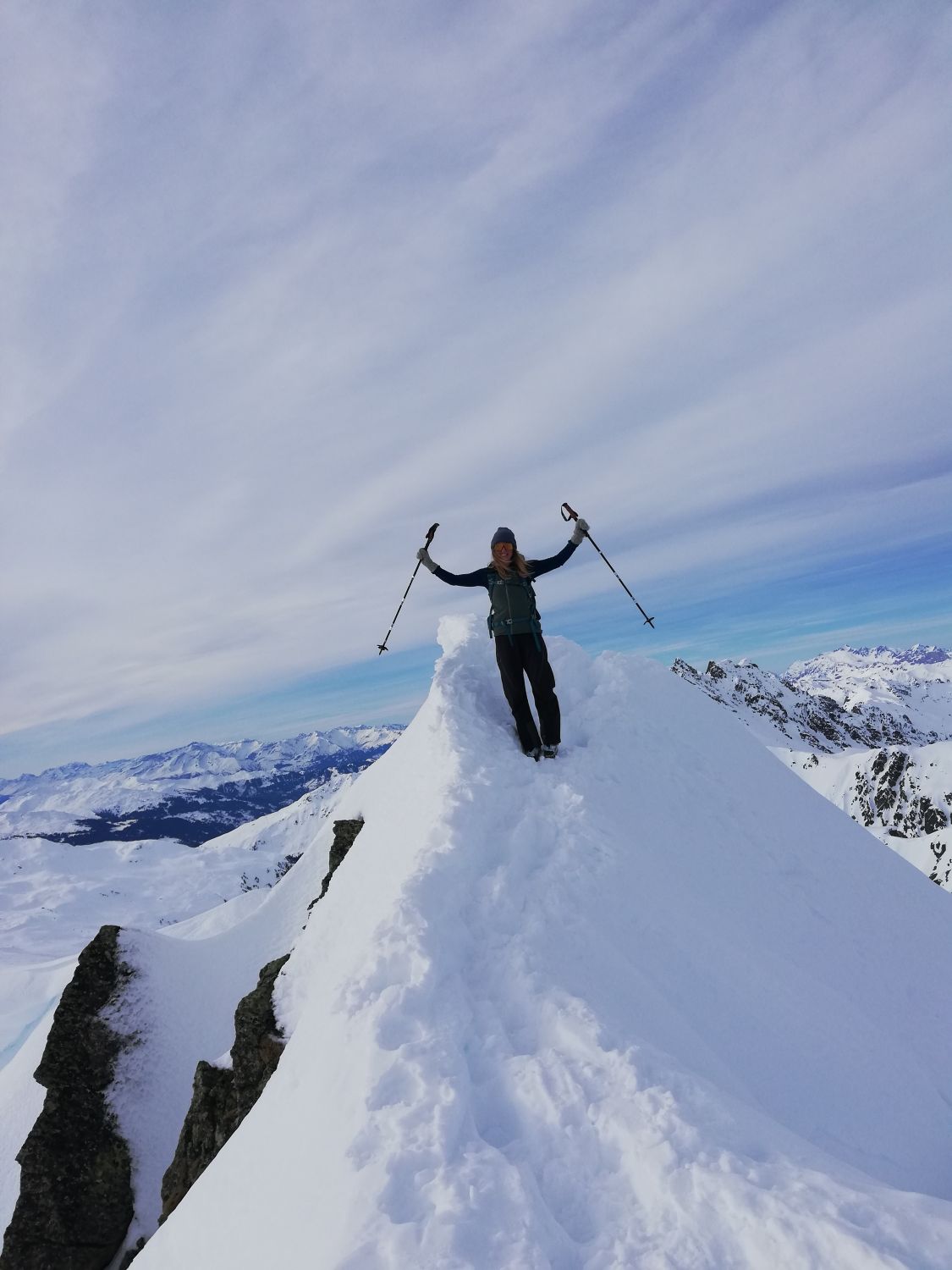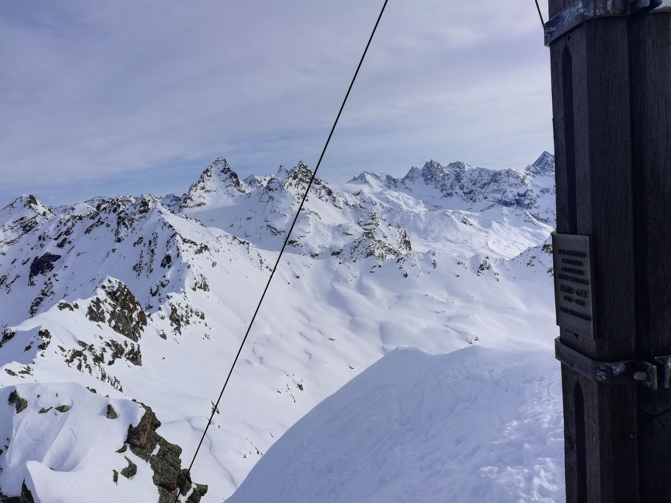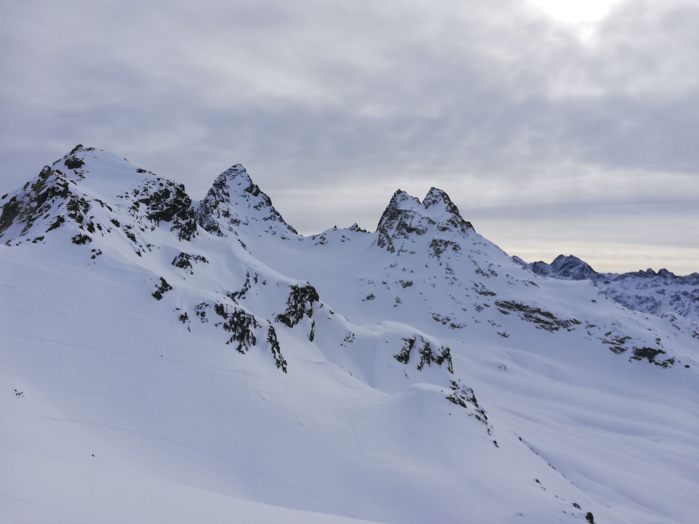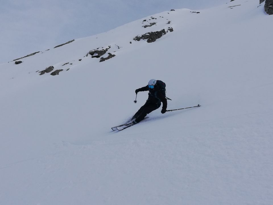 Anstieg zum Plattenjoch auch sehr gute Spur vorhanden. Vom Plattenjoch Abfahrt Richtung Tübinger Hütte immer noch schönster Pulver und ausreichend Platz für eigene Spuren. Auffellen auf einer Höhe von ca. 2250m und Anstieg zur Kessispitze die ja bereits am Sonntag gespurt wurde. Aktuell ausgezeichnete Verhältnisse. (viele Spitzkehren, wir haben 86 gezählt) Erst Abfahrt wie Anstieg nach weiter durch das Garneratal. Da es bereits alte Spuren gab lief es recht gut. Es ist ein langes mühsames Tal zum hinaus fahren, aber ging gut. Abfahrt bis zu de Hüttlein (rechter Seite ca. auf 1400m) und dann auf einem Forstweg links weg auf die Skiroute die uns dann ins Skigebiet führt. Das ist nur ein sehr kurzer Anstieg von ca. 1km und 100hm. Derzeit noch ausreichend Schnee.