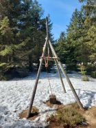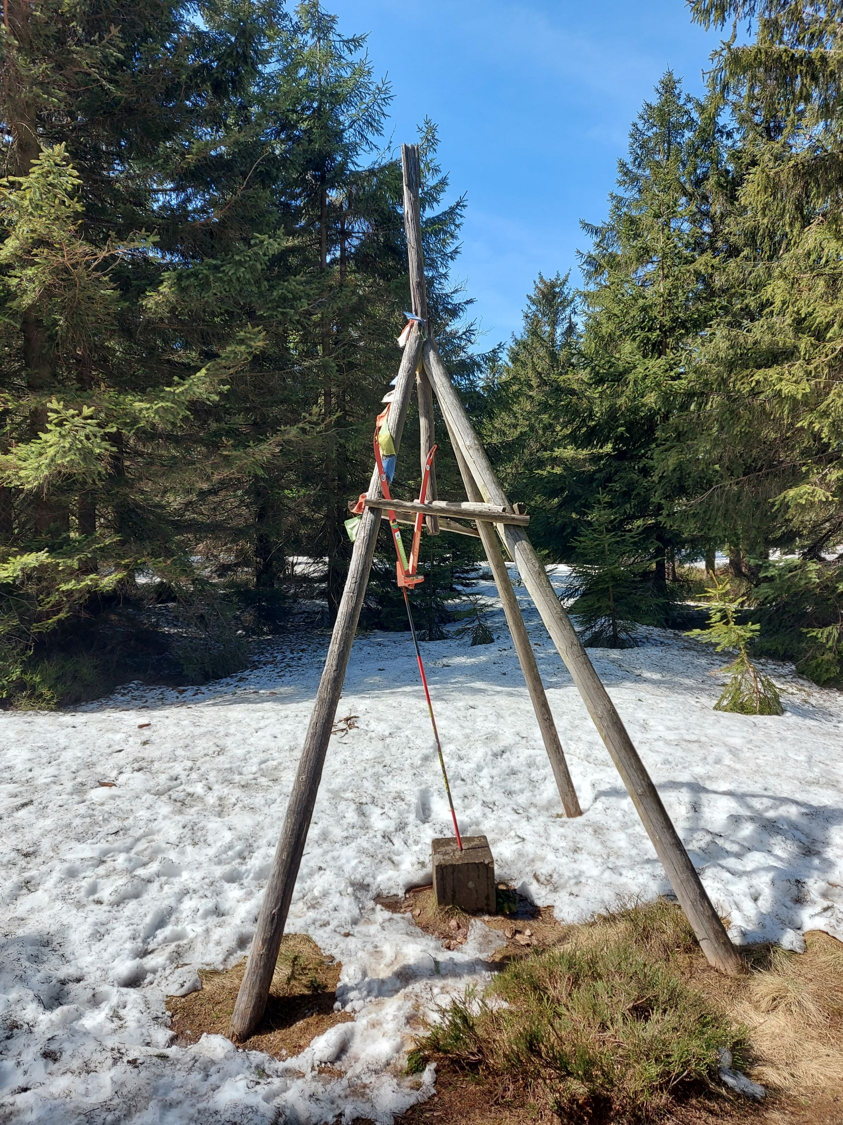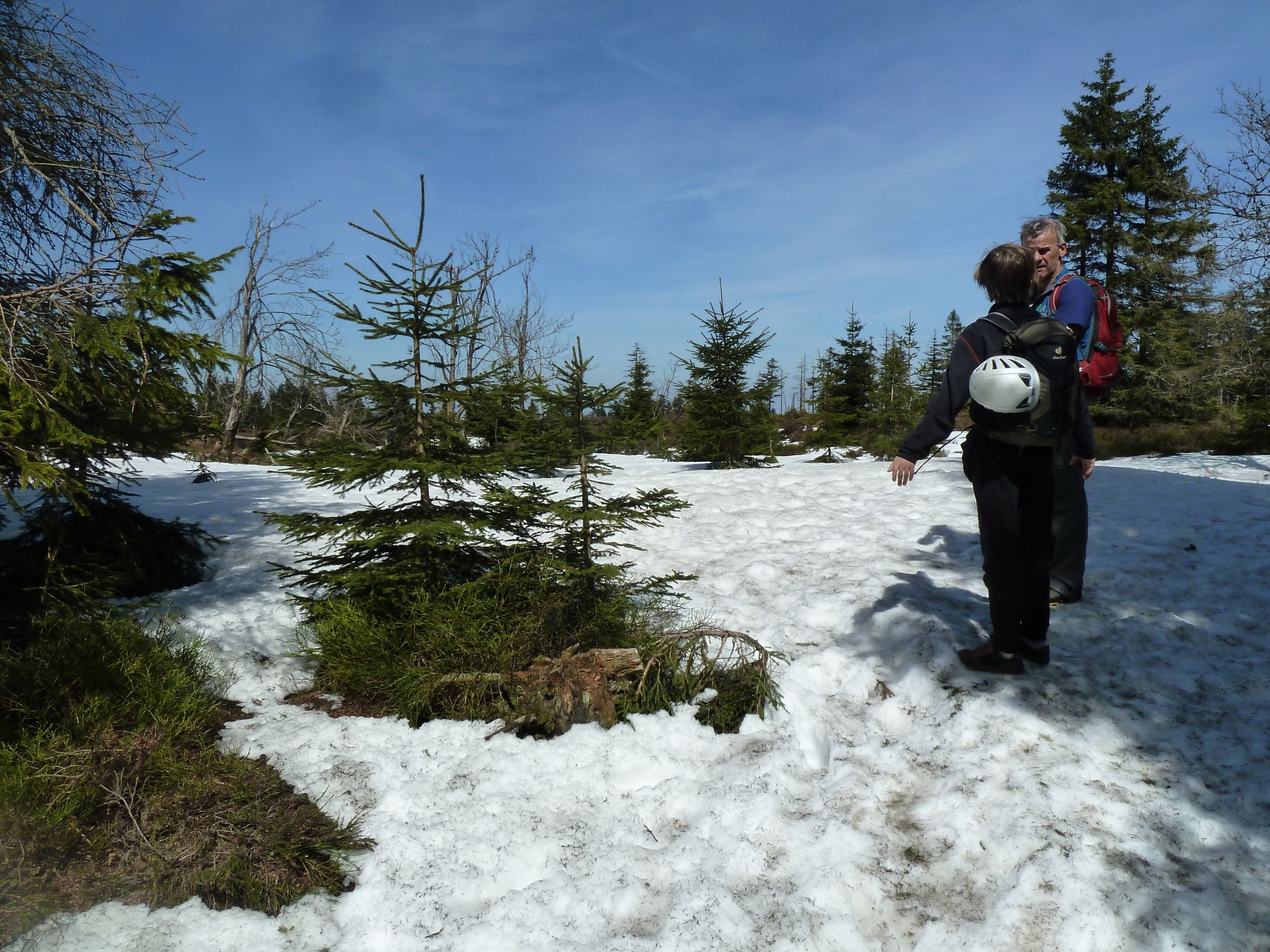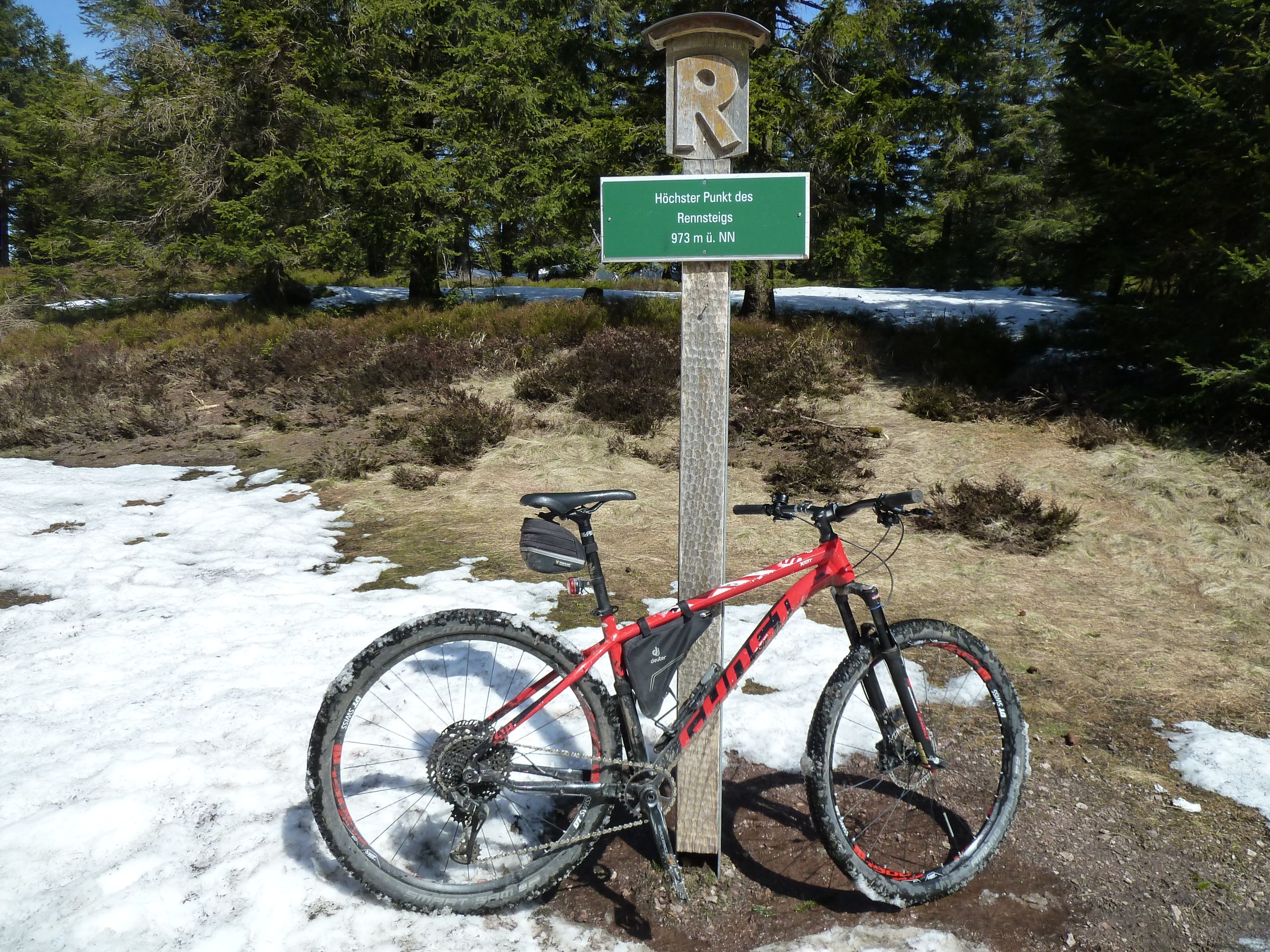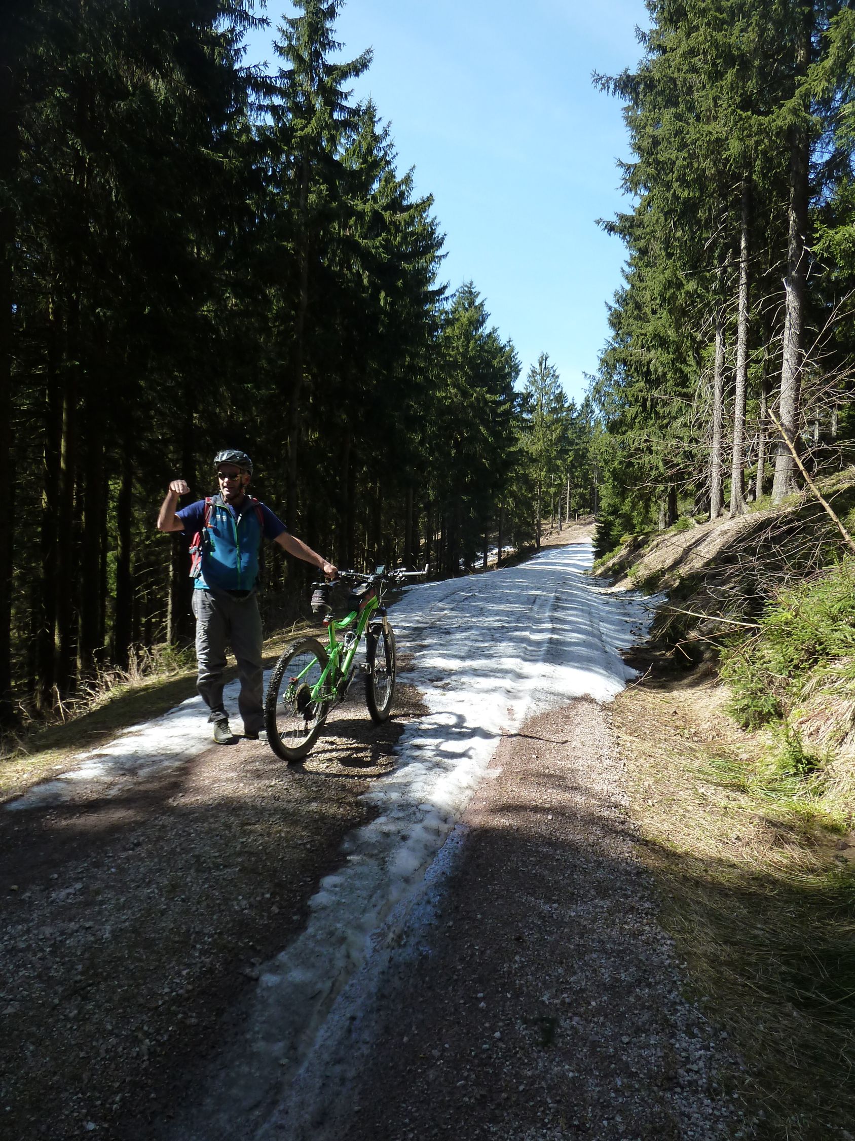 Gute Verhältnisse. Im Gipfelbereich Schnee auf dem Rennsteig. So mussten wir zt. die MTB`s schieben