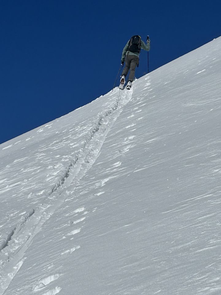Perfekte Verhältnisse im Aufstieg und bei der Abfahrt durch die Nordwestflanke. Super Pulver dort, ganz genial gut zum Fahren!!