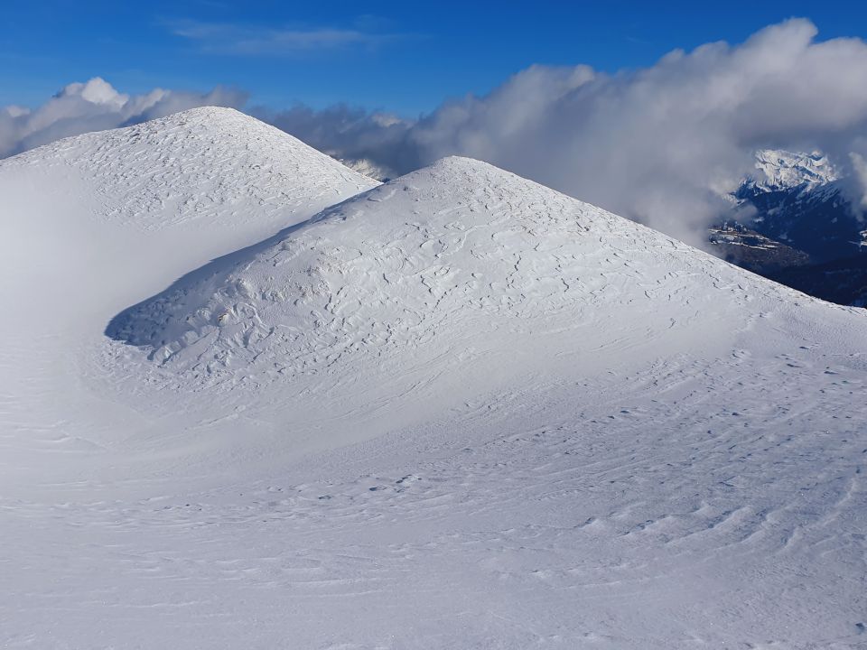 Ab 2000hm bis zu 15cm Pulver ausser in den Südhängen, unterhalb wenig Pulver auf harter Unterlage