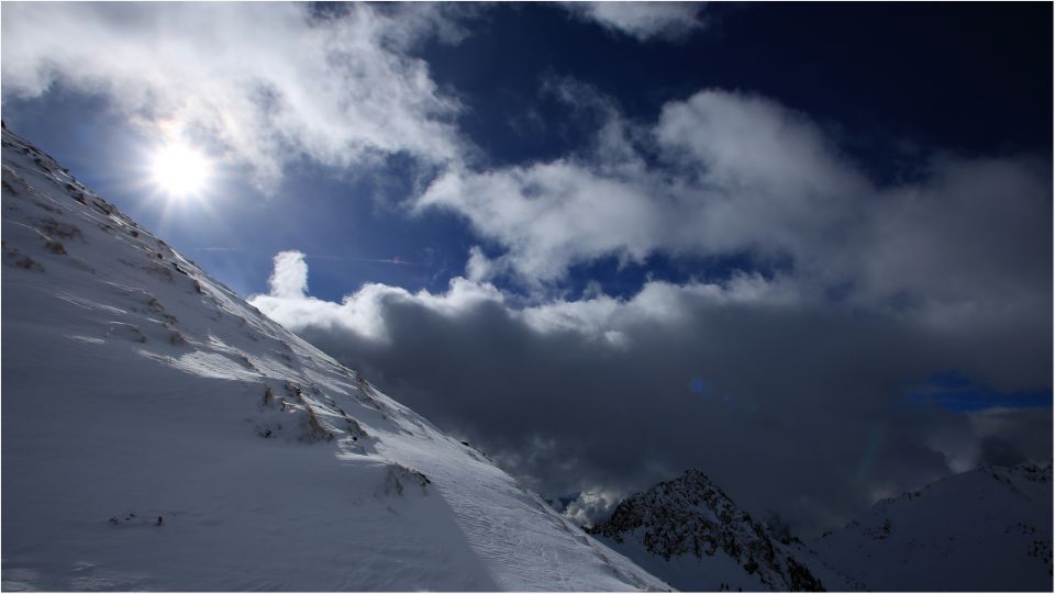 Wunderschöner einsamer Tag auf einem sonst häufig besuchten Gipfel. Kein Mensch unterwegs, tolle Wolkenstimmungen un schönes Licht. Dazu annähernd perfekte Verhältnisse, wenn man vom Gipfelaufbau absieht.