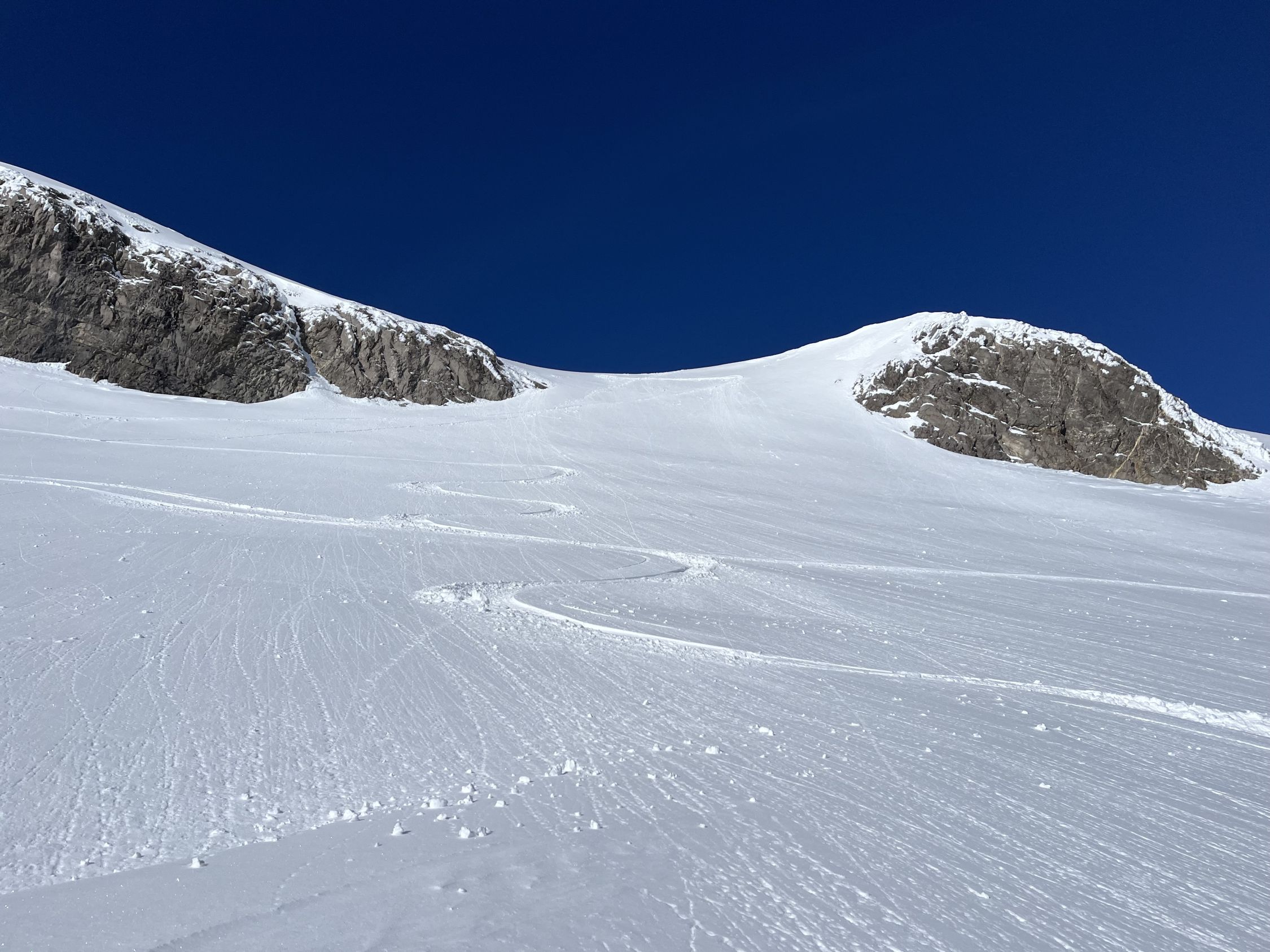Auf dem Gletscher hat es mehrheitlich Pulverschnee und z.T. Eisfelder. Ist aber gut fahrbar.