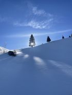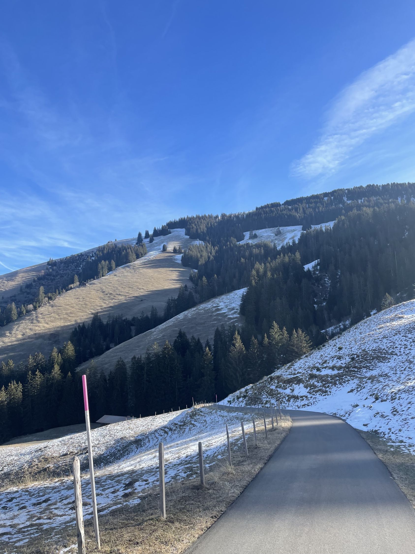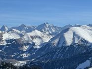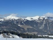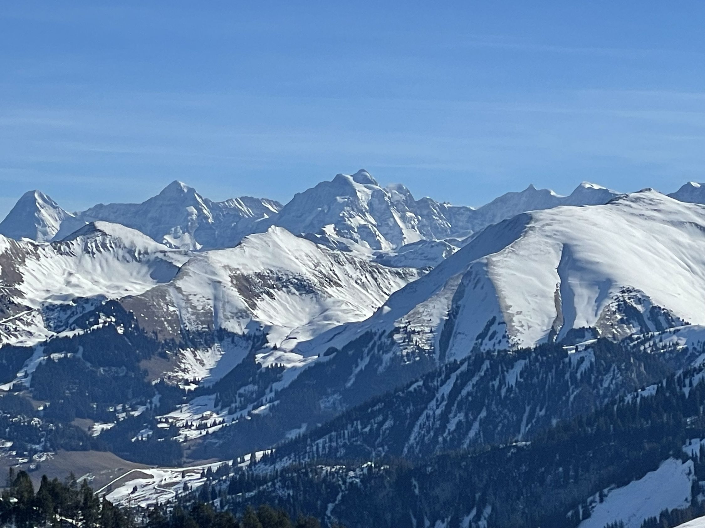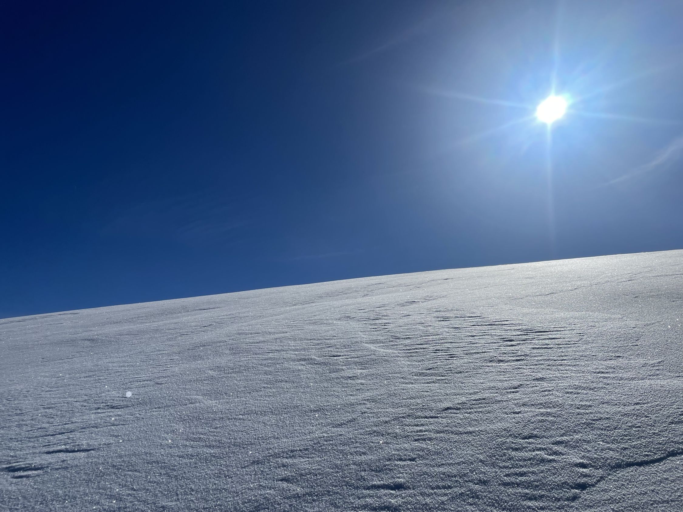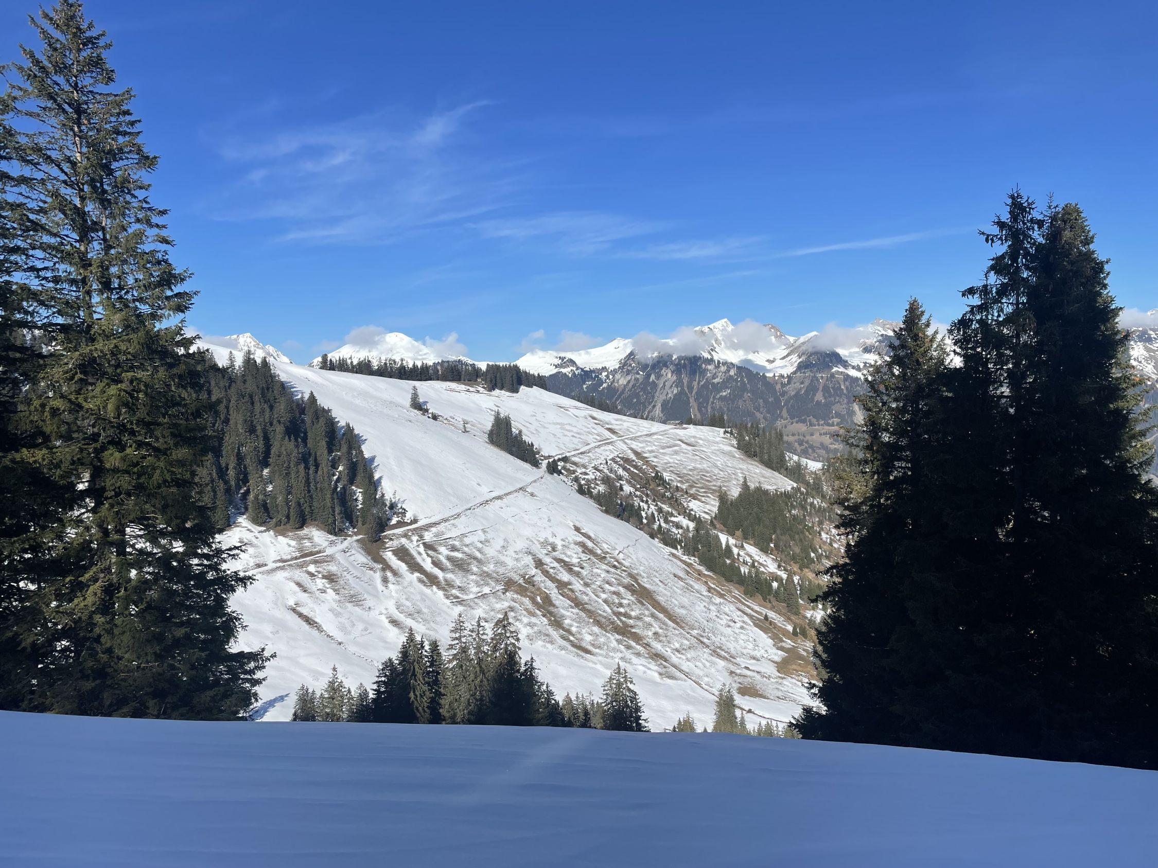 Bei Rossberg ausser etwas Kuntschnee gar nichts an Weiss. Zuerst mal von Schönebode hoch einiges an Skitragen, es hatte viel weniger Schnee, als ich gedacht hatte. Danach mit Ski dem Sommerweg nach hoch, wenige cm Pulver auf sehr harter Unterlage. Gut zum Steigen, an der einzigen steileren Stelle aber ziemlich rutschig. Ich fühlte mich besser mit nochmaligem kurzen Skitragen. Dann über die schönen, offenen Hänge bei Traumwetter zum Gipfel. Ich war heute der Einzige hier, ein Blick in die Runde zeigte einige Spuren am Stand, wenige am Meniggrat und Puur sowie am Gestelegrat. Hübsche kurze Pause, dann Abfahrt: oben könnte es kaum besser sein, Mitte dann ratterte es wegen der alten harten Spuren ziemlich unter dem wenigen Neuschnee. Unten traversierte ich dann rüber in den Grätlihang, wo ich im Aufstieg noch ein Altschneeband gesehen hatte. Auf diesem mit ein paarmal Abziehen noch bis Schönebode fahrbar.