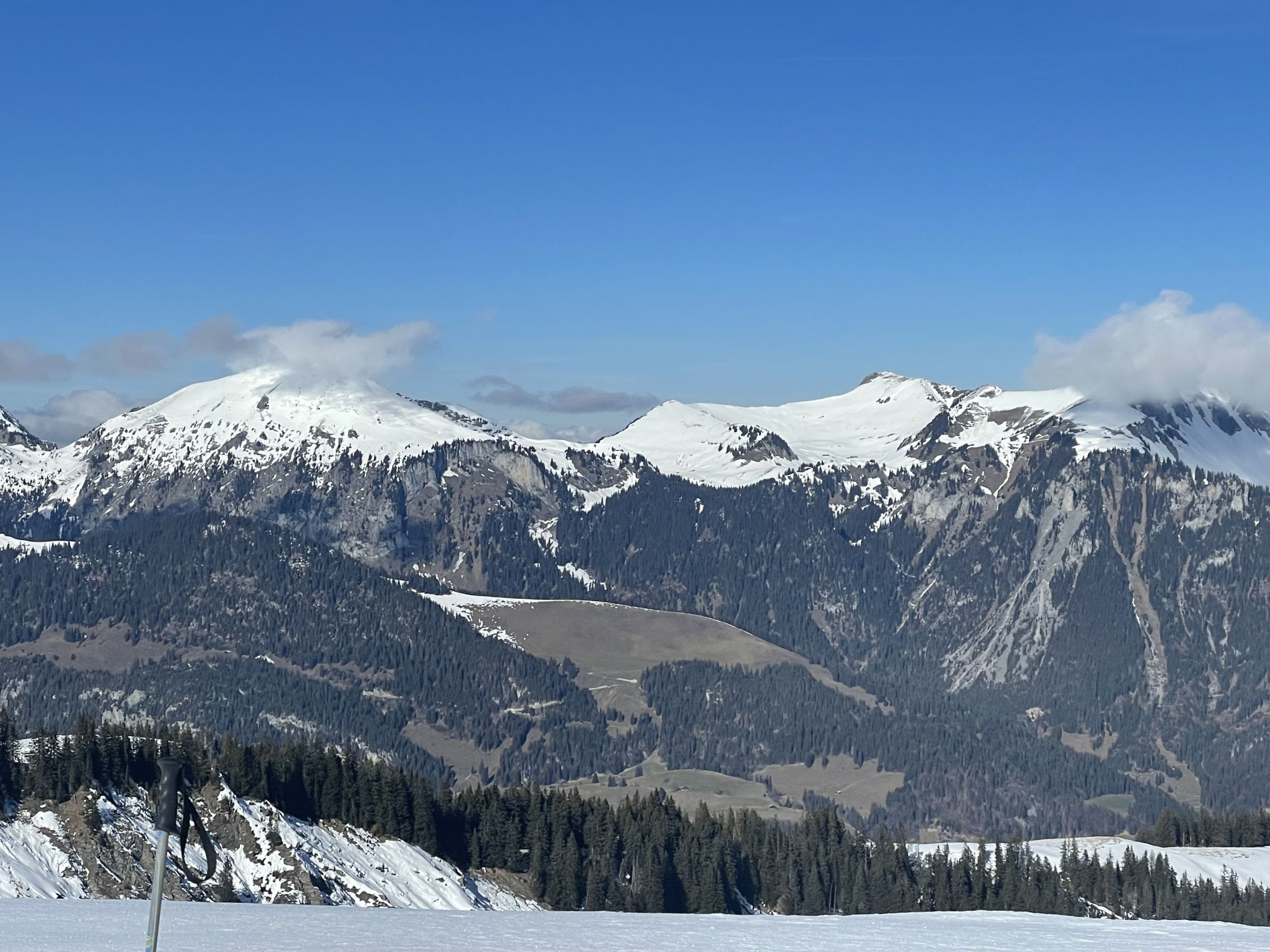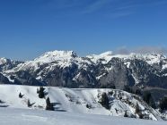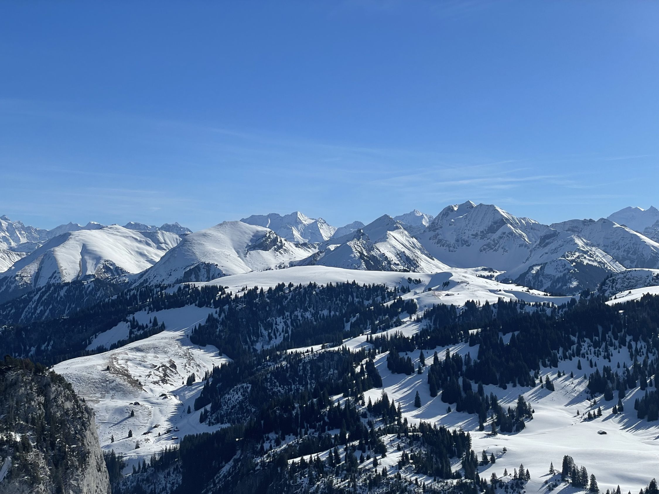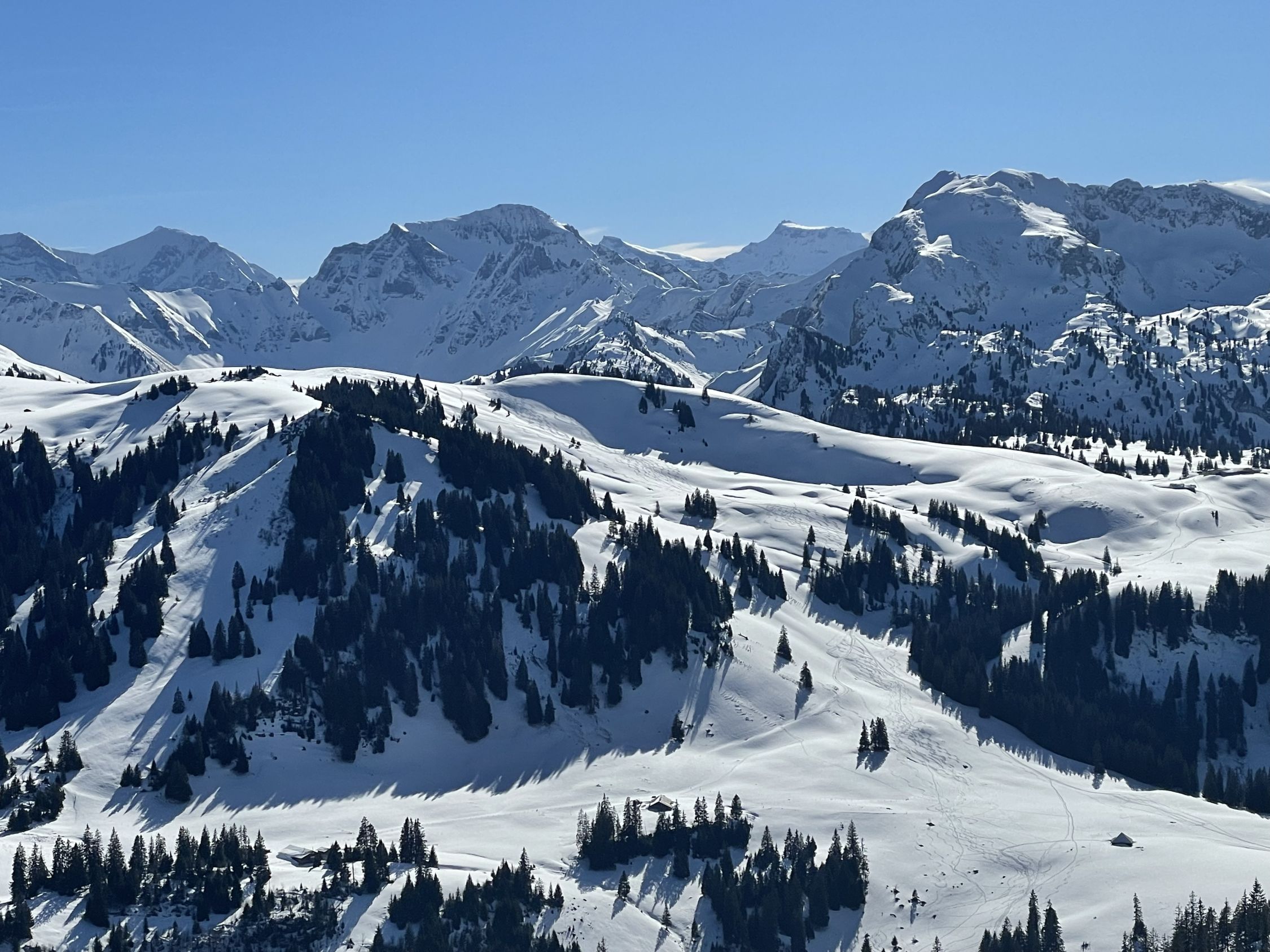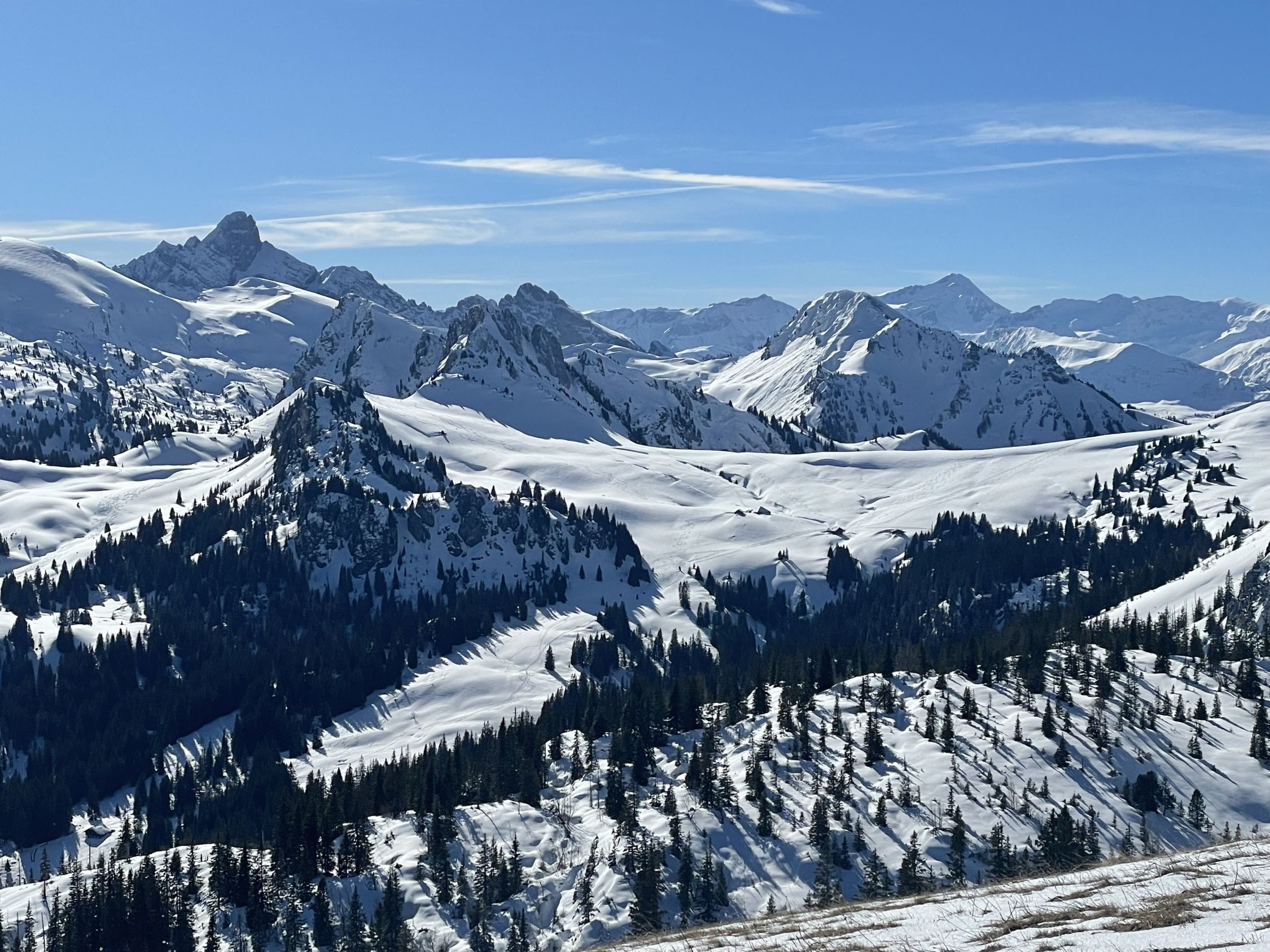 Bei Rossberg ausser etwas Kuntschnee gar nichts an Weiss. Zuerst mal von Schönebode hoch einiges an Skitragen, es hatte viel weniger Schnee, als ich gedacht hatte. Danach mit Ski dem Sommerweg nach hoch, wenige cm Pulver auf sehr harter Unterlage. Gut zum Steigen, an der einzigen steileren Stelle aber ziemlich rutschig. Ich fühlte mich besser mit nochmaligem kurzen Skitragen. Dann über die schönen, offenen Hänge bei Traumwetter zum Gipfel. Ich war heute der Einzige hier, ein Blick in die Runde zeigte einige Spuren am Stand, wenige am Meniggrat und Puur sowie am Gestelegrat. Hübsche kurze Pause, dann Abfahrt: oben könnte es kaum besser sein, Mitte dann ratterte es wegen der alten harten Spuren ziemlich unter dem wenigen Neuschnee. Unten traversierte ich dann rüber in den Grätlihang, wo ich im Aufstieg noch ein Altschneeband gesehen hatte. Auf diesem mit ein paarmal Abziehen noch bis Schönebode fahrbar.