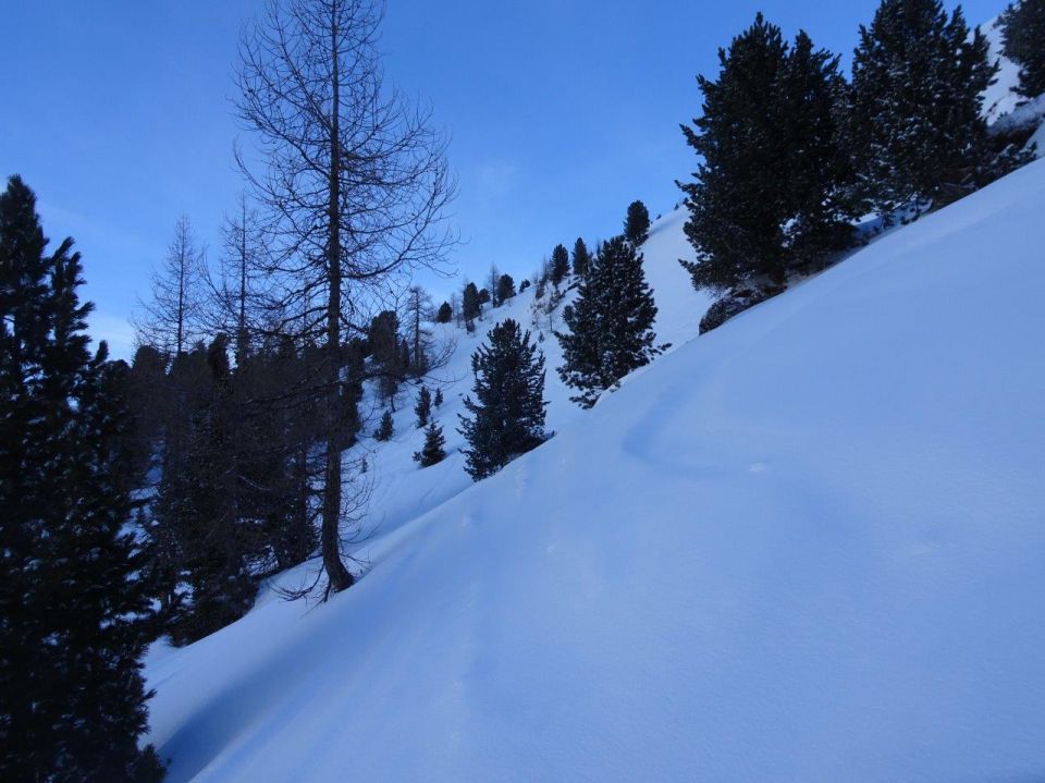 Abfahrt mit 20-30cm sidefinem Pulver auf harter Unterlage !