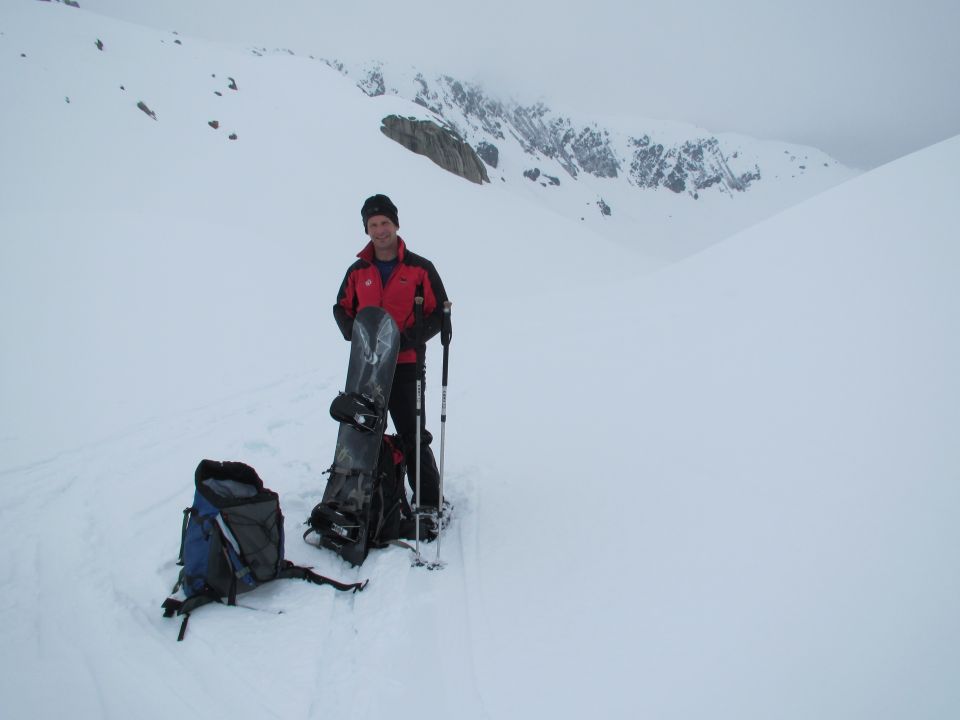 Mit Snowboard Kollegen von Tiefenbach via Tätsch und Albert Heim Hütte auf den Schafberg oder zu den Auf den Stöcken. Abfahrt
