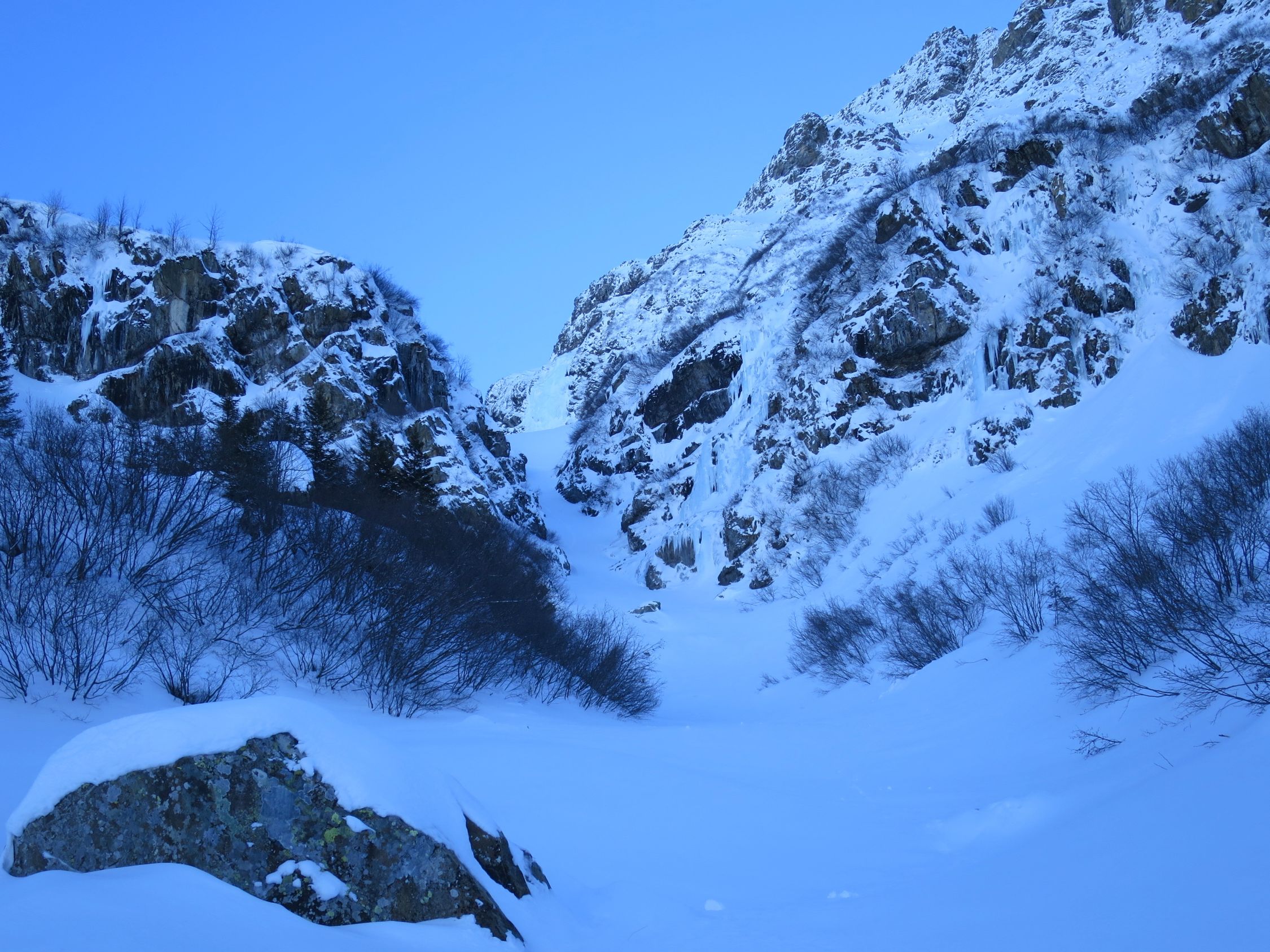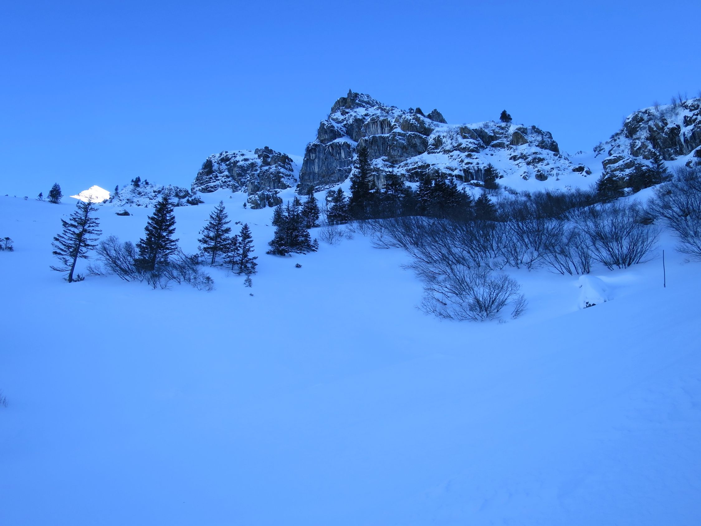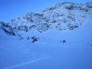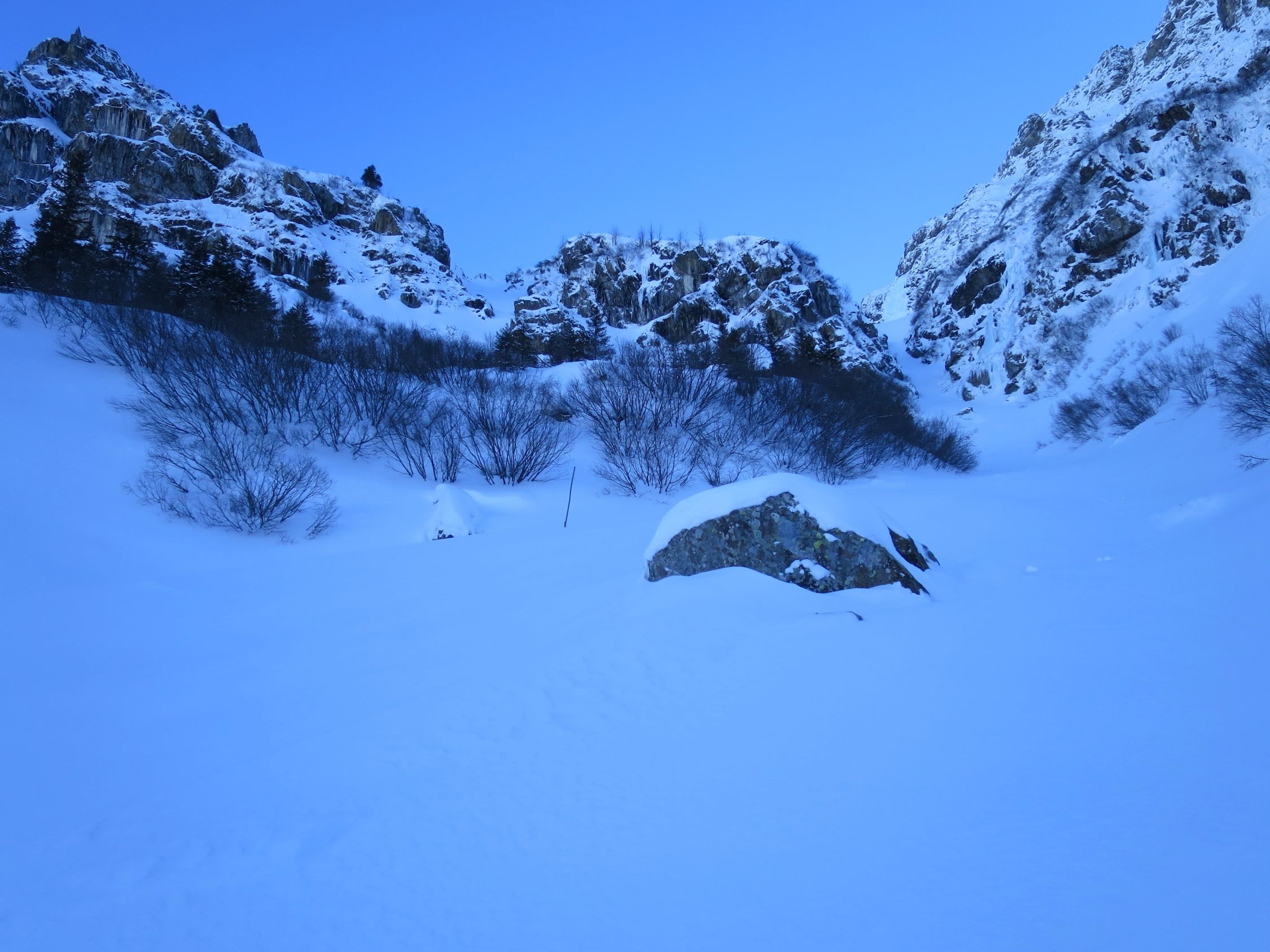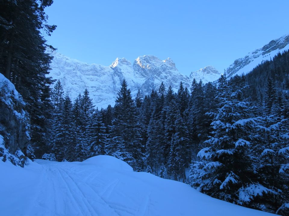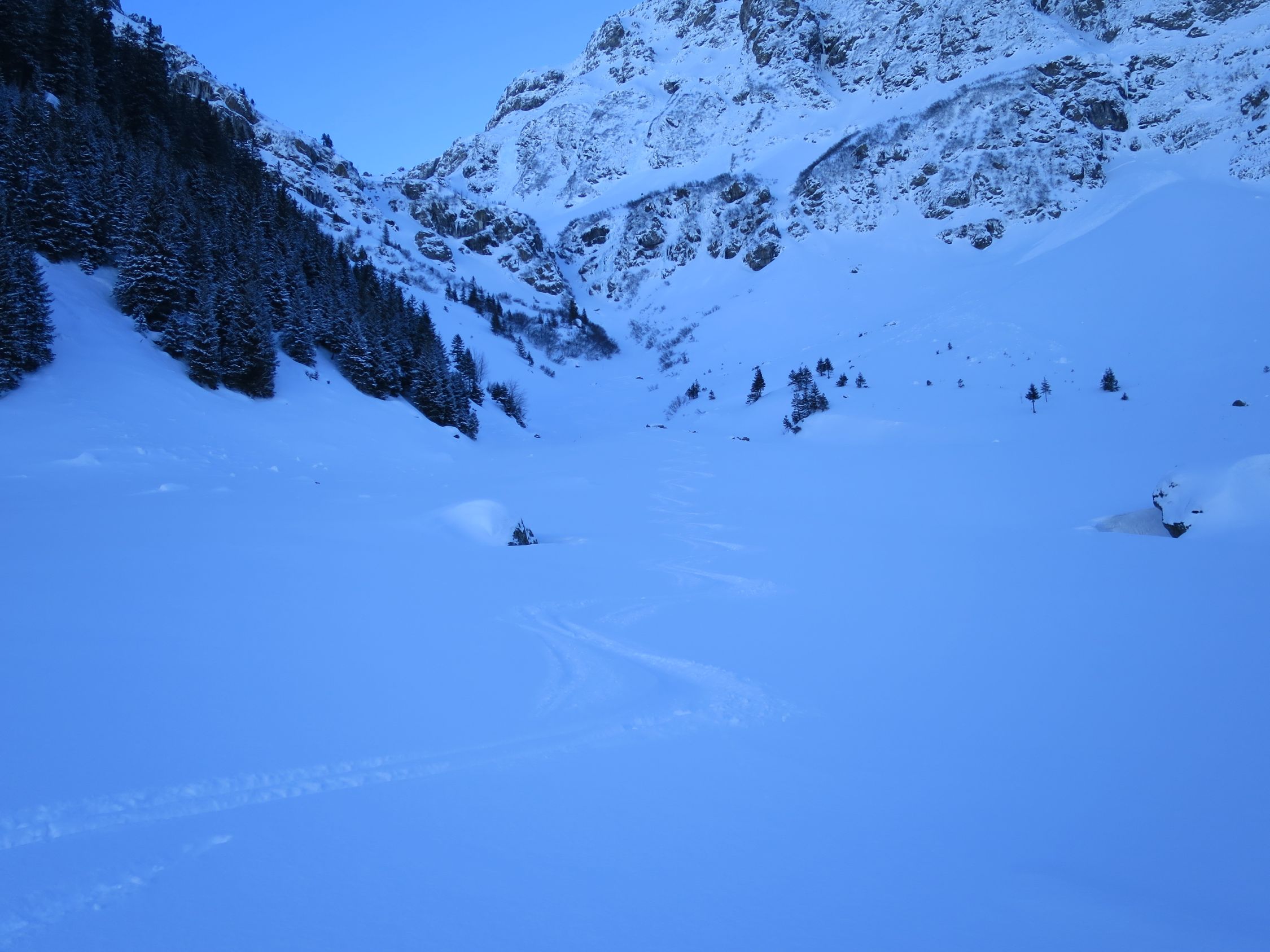 Die ganze Tour liegt um diese Jahreszeit im Schatten. Bei Nider Lammerbach toller Pulverschnee.