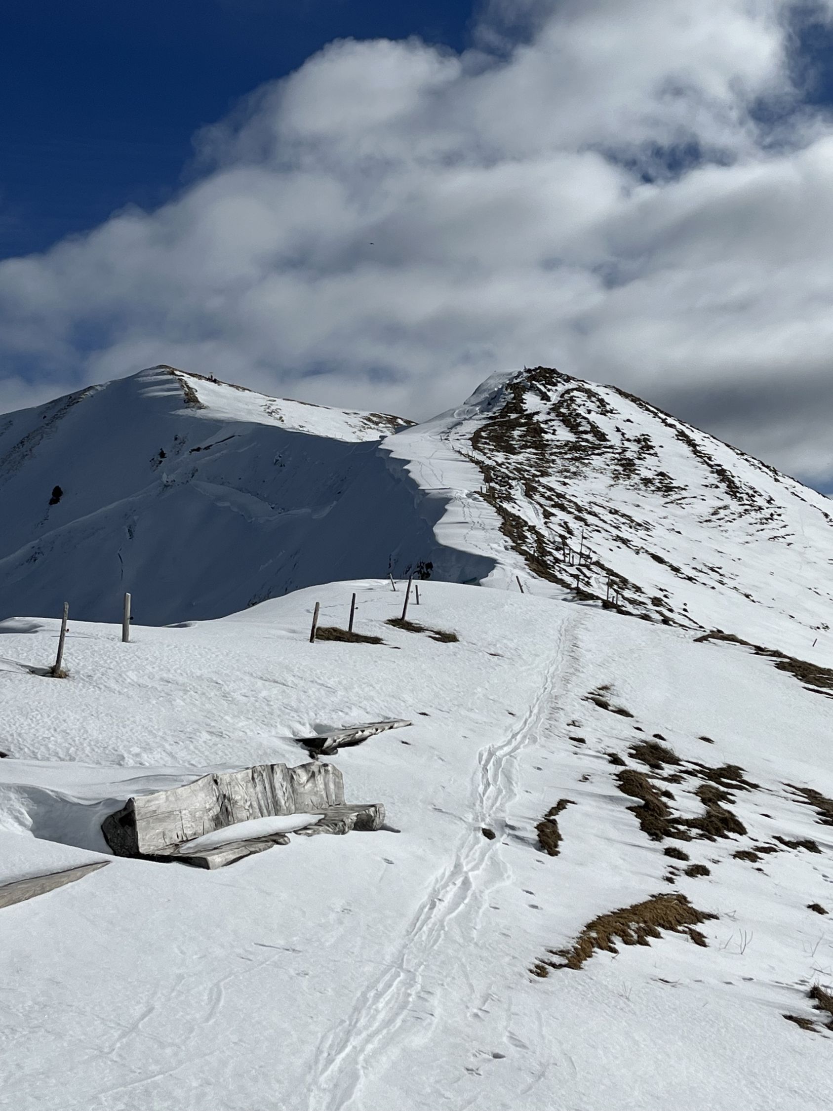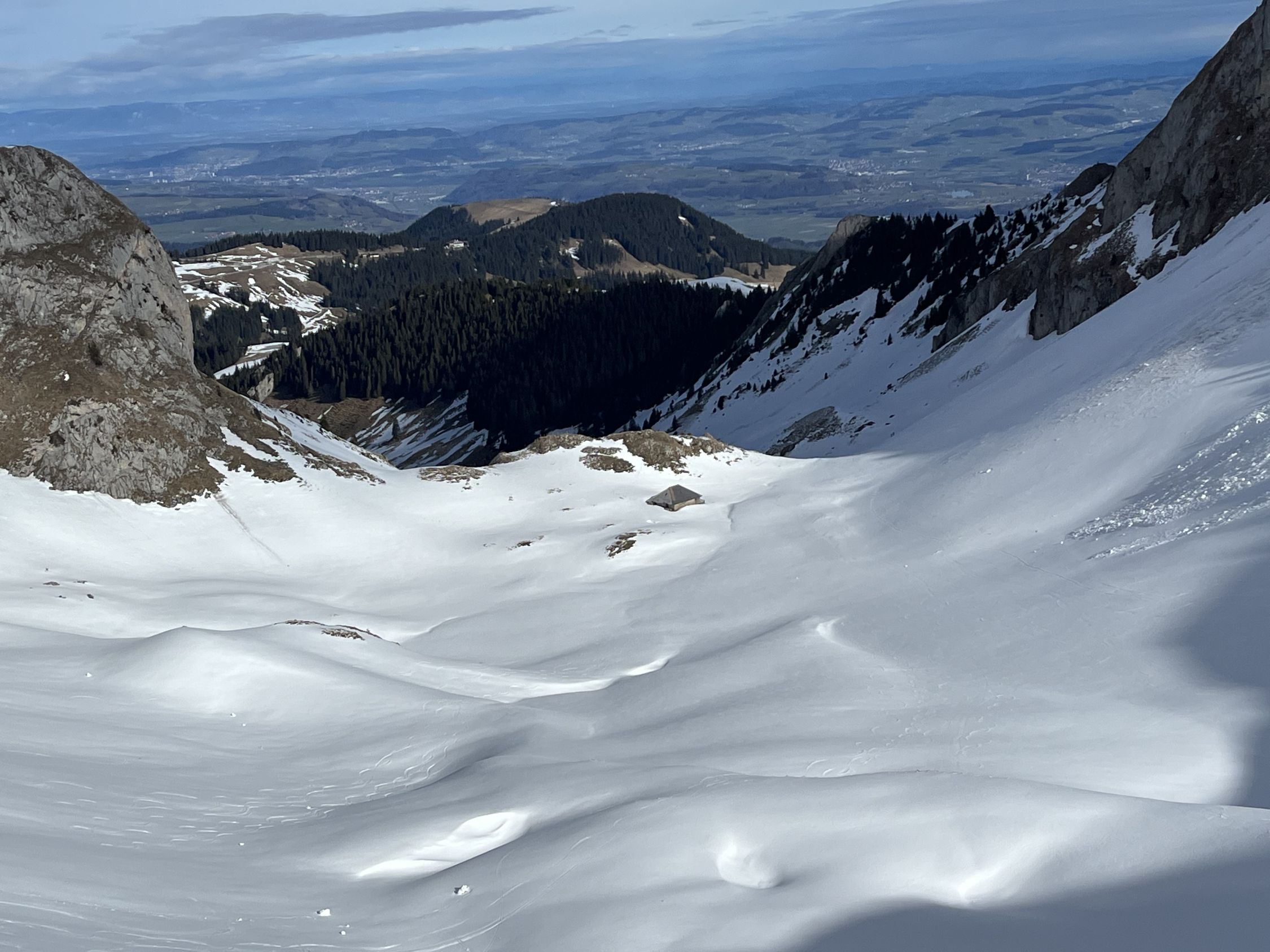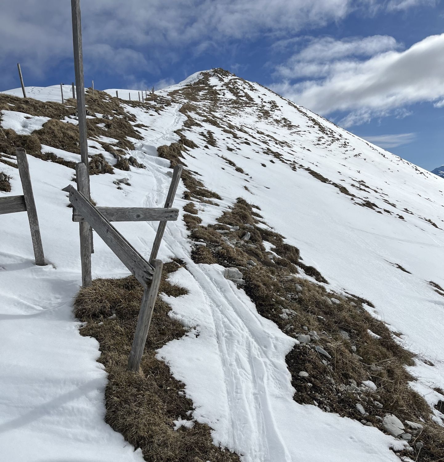 Schöne Tour, leicht bewölkt. Vor allem nach dem Mittag zu warm, Schnee unten nass und schwierig zu fahren.