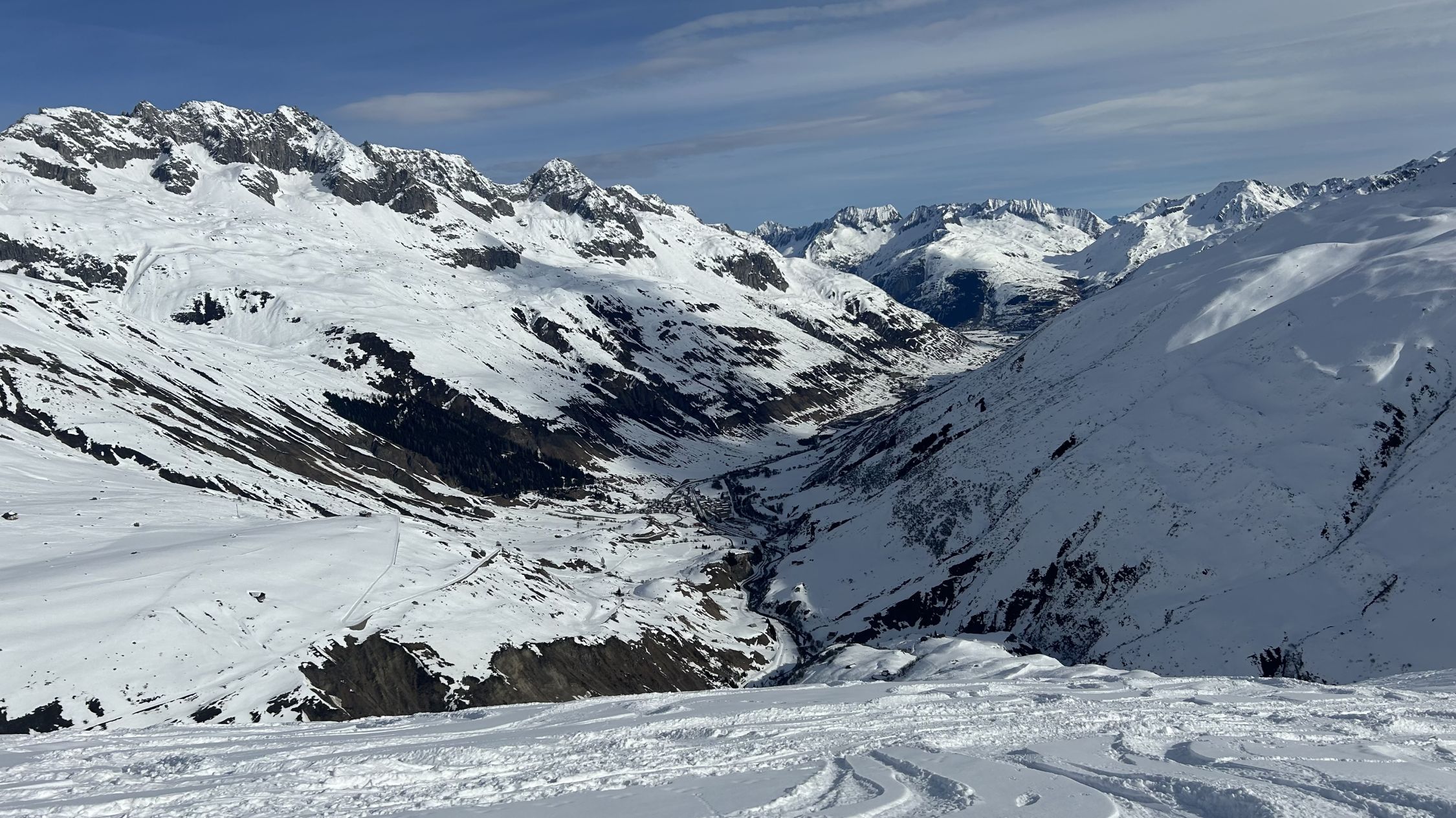 Schnee ab Furkabahndepot. Doppelspurige Aufstiegsspur bis zum Gipfel. Erstaundlich viel Schnee.
