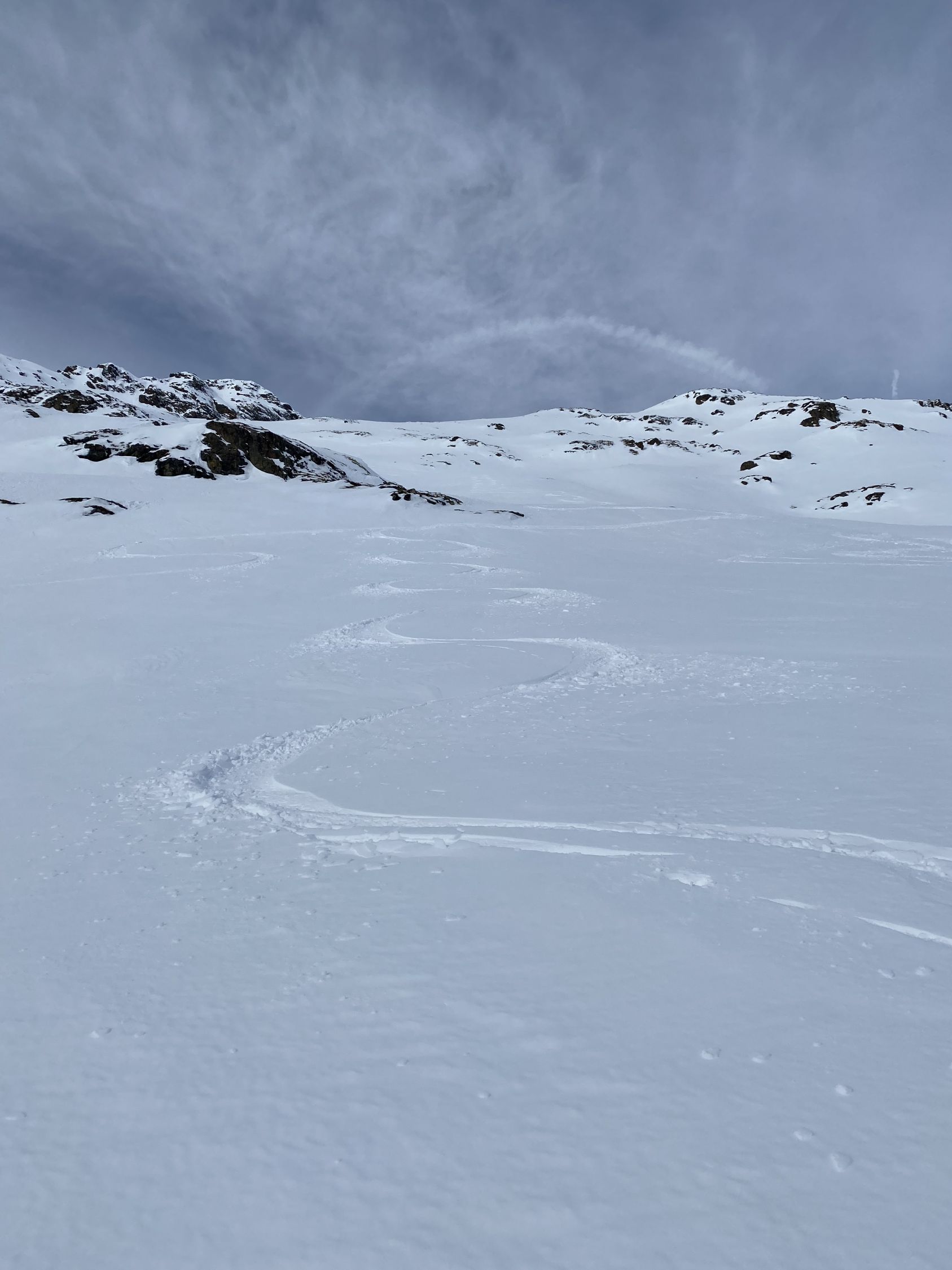 Schnee nicht mehr pulvrig, heute weich und gut zu fahren