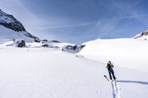 Kurze Tragestellen bis "Kartigel", danach immer noch sehr viel Schnee. Die Steilstufe war gut zu gehen, erst recht hart, dann schwerer Pulver. Ab 2000 im Aufstieg dann recht schöner Pulver bis circa 2500m, darüber stark windgepresst, aber ohne Harscheisen gehbar. Vom Skidepot dann im Prinzip guter Stapfschnee, aber dank eventuell nicht optimaler Routenwahl durch viel loses Gestein und über nur leicht überschneite Platten dennoch herausfordernd. Der Grat zum Gipfel war dann wieder gut gehbar. Steigeisen und Pickel sollten zur Sicherheit auf jeden Fall dabei sein. Die Abfahrt war dann eher enttäuschend, oben hart und meist tragend, aber der pulvrige Teil vom Aufstieg war in der Zwischenzeit dank der hohen Temperaturen (12° im Meien!) sehr schwer geworden.