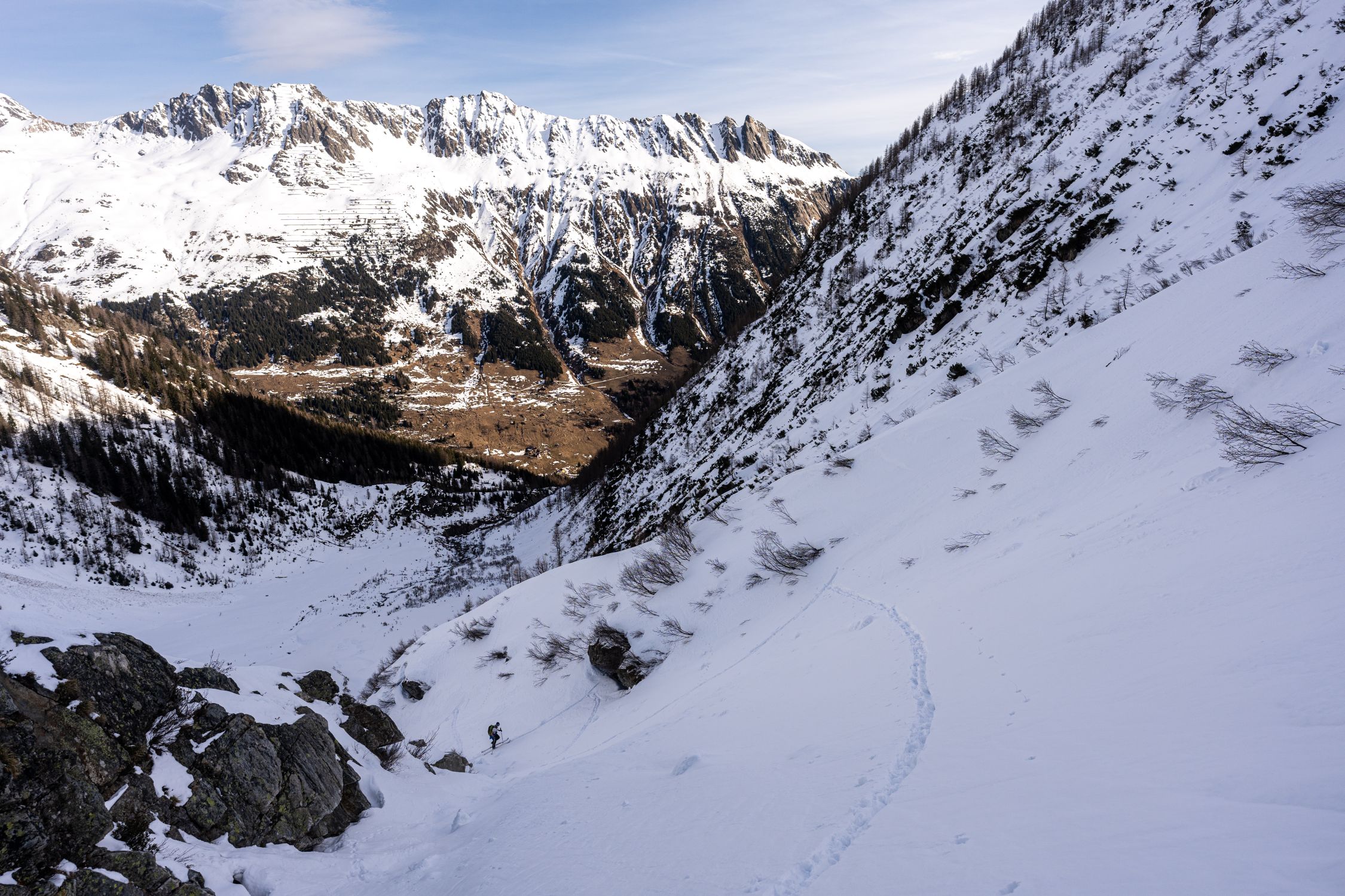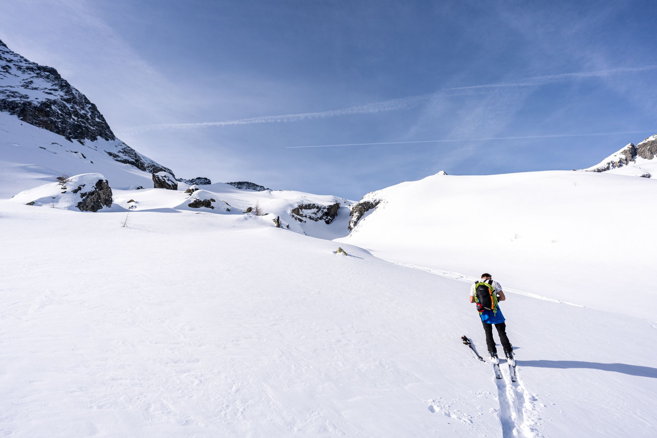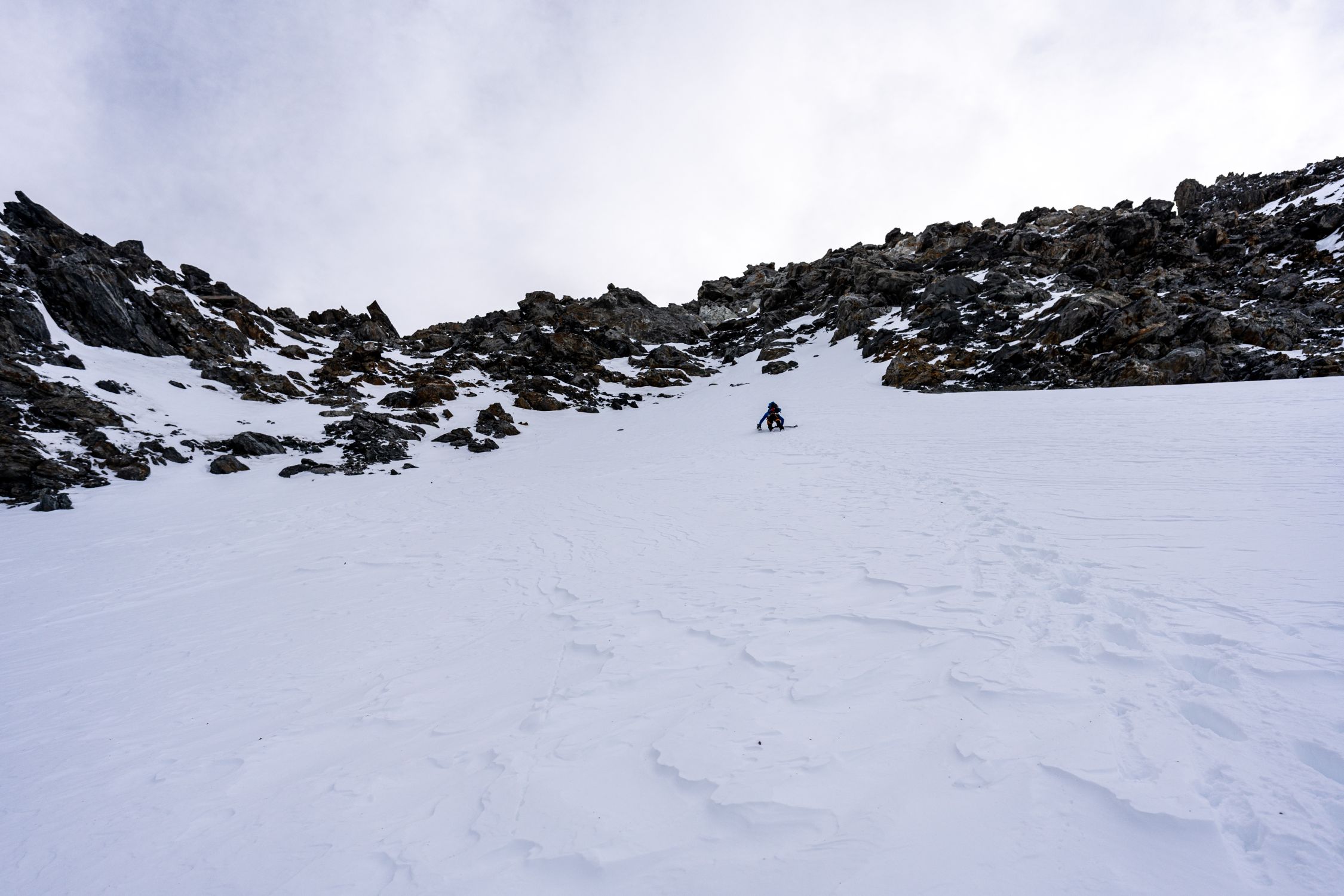 Abfahrtstechnisch sah die Flüelücke besser aus als das Rohrspitzli, von dort auch vier Abfahrtsspuren von den Vortagen, vermutlich Überschreitung von der Voralphütte.