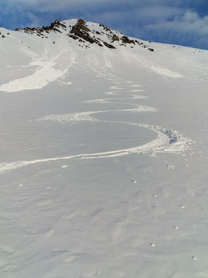 Sehr gute Verhältnisse am Gletscher Ducan. Ski konnten bis kurz vor dem Gipfel mitgenommen werden. Die Abfahrt von der Gletscher Ducan Flanke war bestens. Danke Rita fürs Vorspuren. Abgefahren bis 2300m Höhe Richtung Sertig in besten Powder. Dort wieder aufgefellt um auf das Älplihorn zu gehen. Ich hatte das Älplihorn leichter in Erinnerung. Jedenfalls brauchte ich den Pickel für eine kurze Stelle zum Hauptgipfel. Danach tatsächlich noch einen unberührten Hang Richtung Monstein gefunden. Wetter war perfekt. Kein Wind, Sonne pur und angenehme Temperaturen. Der Powder in den Schattenhängen bleibt bestehen...