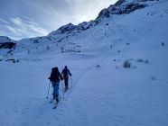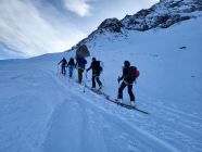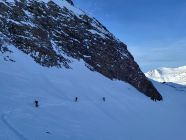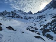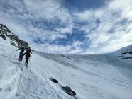 Sehr warme Temperaturen und kaum Wind. Besonders im oberen Teil der Tour sehr wenig Schnee. Querung nach Panetone geht gut ohne Harscheisen. Aufstieg nur bis Breithornpass bzw. Punkt 3374. Ab dort wegen den harten und eisigen Verhältnissen Aufstieg zum Breithorn nur zu Fuss möglich, war uns zu mühsam.