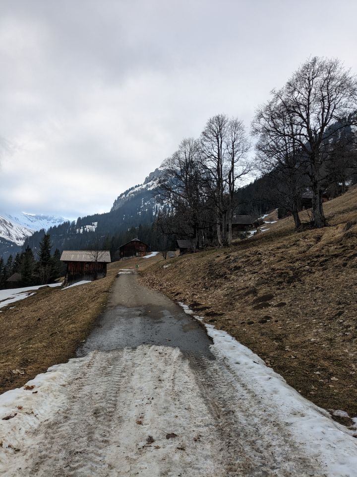 Fussweg mit teilweiser Schneedecke im Wald bis P 1773 kurz nach Wald, dann kann mit Ski gegangen werden. Ab dort durchgehende Schneedecke. Im unteren Teil durch schattige Lage weitestgehend fester Schnee, ab Sousegg dann mehrheitlich sulzig aber noch gut zu gehen und fahren. Ab Lobhörner dann Nordexposition in Traverse und unter Sonne gelittener Schnee ziemlich locker. Auch im Aufstieg auf Schwalmere dann mehrheitlich Sulz (kurze Pulverpassagen). Gipfelaufstieg dann wieder stark sulzig.