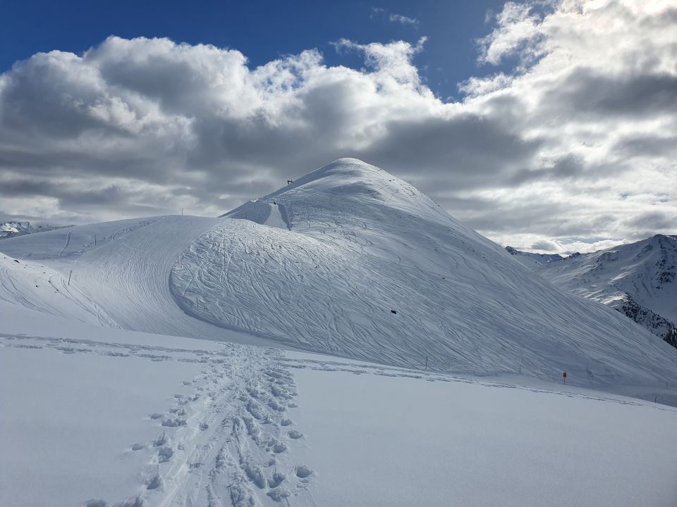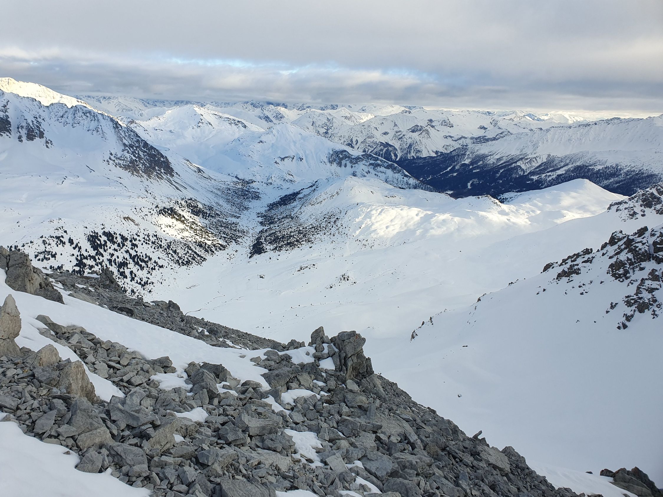 Bleibt gleich, für den Piz Mezdi muss der Schnee gefroren sein, damit nicht der ganze Hang ins Rutschen kommt.