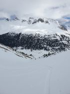 Der Piz Amalia war von S-charl her gespurt. Ich habe dessen Spuren erst in der Mulde fast zuoberst gesichtet.