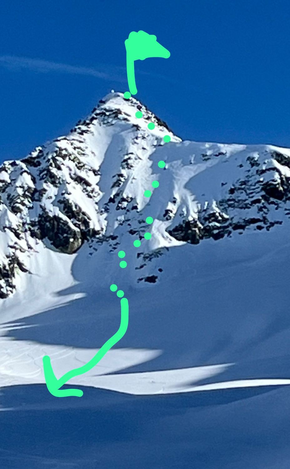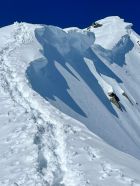 Nordhänge pulver bis 2200m. Aufstieg sehr bequem, ohne harscheisen. Grat zum Gross Muttenhorn super Verhältnisse, sehr wenig Felsen und gute Trittschnee. Stozig Muttenhorn versucht aber wegen riessige Wächte nur bis skidepot. Steile Abfahrtvariante ins Muttgletscher war schön mit viel Schnee drin. Nach Oberwald viel besser als erwartet dank einige Spuren die mehr N gefahren sind und dann zurück zur Piste um 1700m