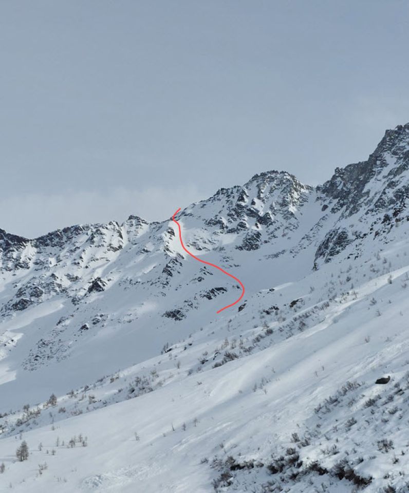 Ich bin bis auf 3100 m. ü. M. aufgestiegen und dann umgekehrt. In den Felsen hatte es viel Pulverschnee; es wäre mir zu mühsam, mich da hinaufzuwühlen.