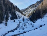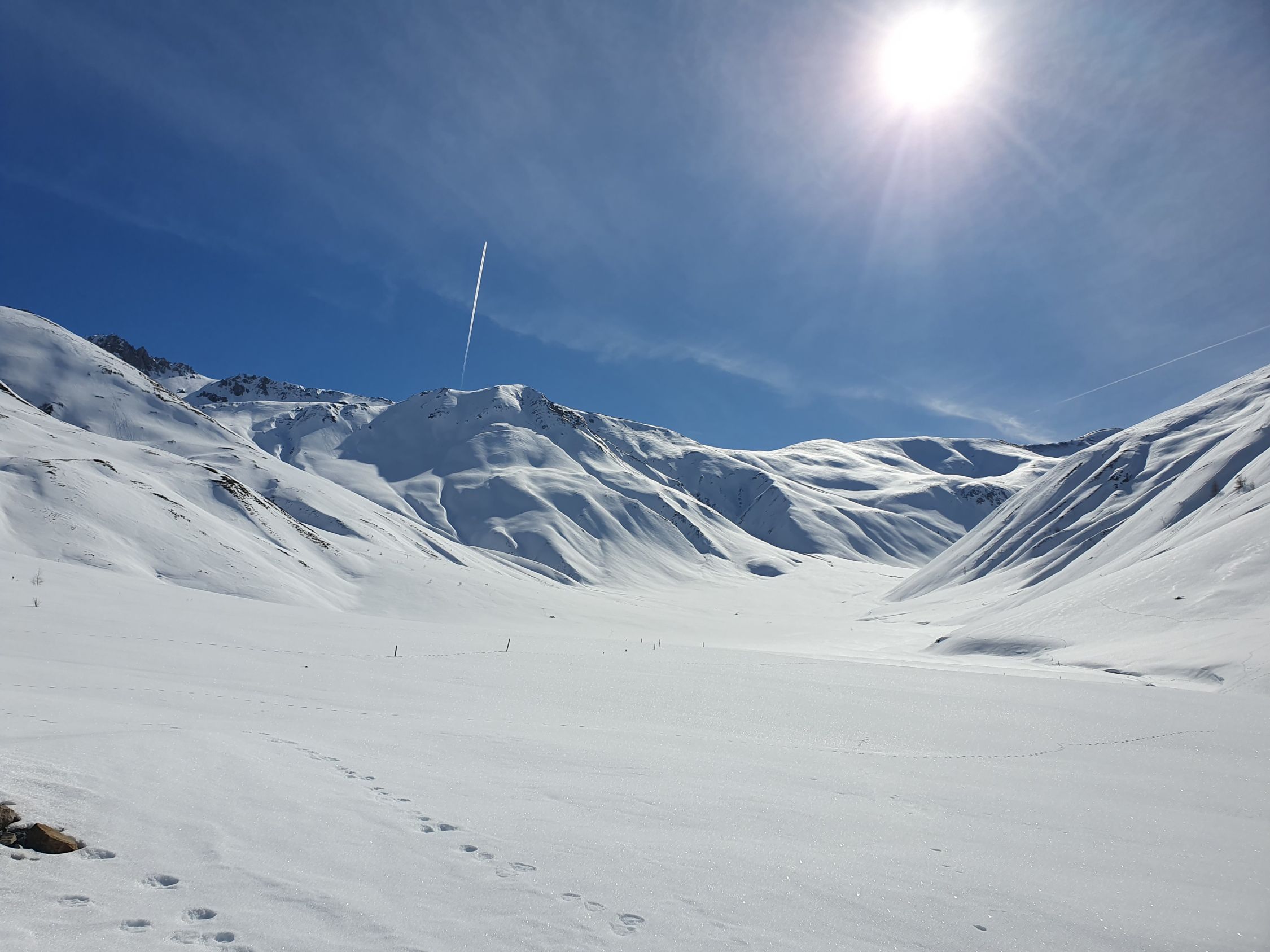 Start um 08:30 bei S-chanf, kurzer Lauf bis zur Brücke, bei der die Skis schon angeschnallt werden können. Der Weg in die Val Chaschauna ist lang und sehr flach. Wenigstens war der Schnee nicht klebrig. Die meisten Spuren sichtete ich bei der Alp Vaüglia Suot (P1954) in die, resp. von der Val Vaüglia.