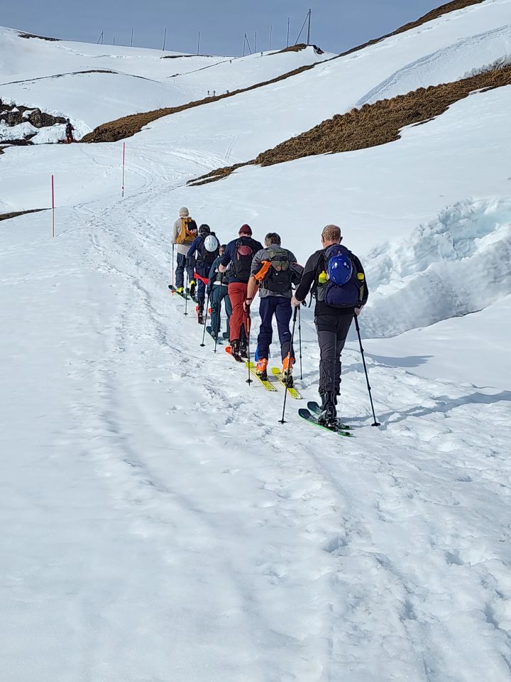 Die Verhältnisse waren top wir haben weniger Schnee erwartet. Der Aufstieg ging problemlos, Schnee lag noch durchgehend genug, Schnee war nicht hart gefroren, griffig gut. Die Abfahrt trotz Sonneneinstrahlung nicht sulzig, einfach super!