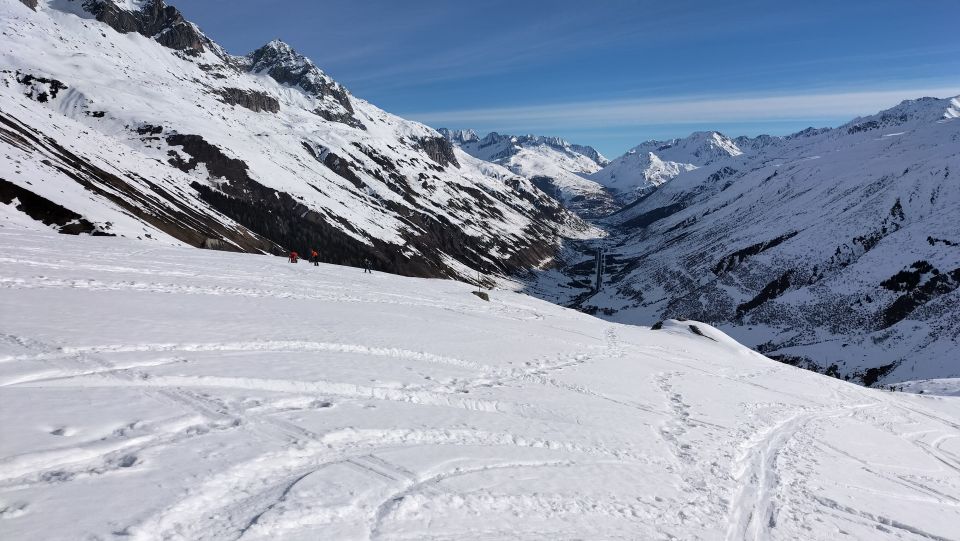 Start der Tour am 9 Uhr in Realp, das Wetter heute sehr schön , Aufstieg bis Hotel Galenstock noch sehr hart, dann viel Sonne und besseren halt, ab Trübseeplange dann schon Puverschnee, der oben leider Windspuren hatte, Abfahrt heute zu dreiviertel gut.