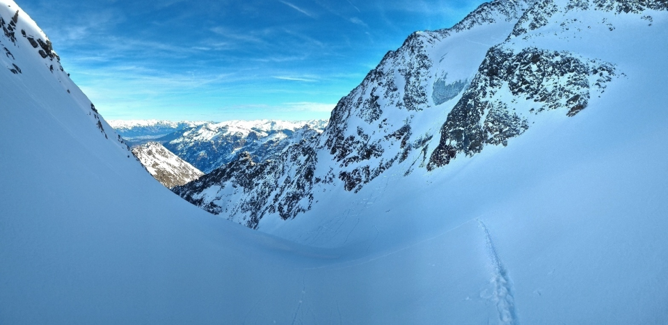 Derzeit sehr gute Verhältnisse da alle Schlüsselstellen gut eingeschneit. Kein Eis oder harte Passagen am Habichtschnabel. Die Rinne zum Grat ist bis oben hin gut eingeschneit und hat guten Trittschnee. Die kurze 2er Stelle am Grat trotz haltosen Grieselschnee mit guten Griffen leicht zu überwinden. Abfahrt ohne Abschnallen möglich und meist Pulverschnee. Im Bereich der Mischbachalm dann zunehmend Nasschnee, in der Rinne Sulz. Auf der gesamten Strecke Schnee ohne Windeinfluss, Harsch oder störende Lawinenkegel. Ab 1600 430Hm zum P tragen. Die 2150Hm vergehen sehr schnell da ohne Flachpassagen. Trotz wolkiger Nacht und Plusgrade am Start perfekte Verhältnisse.