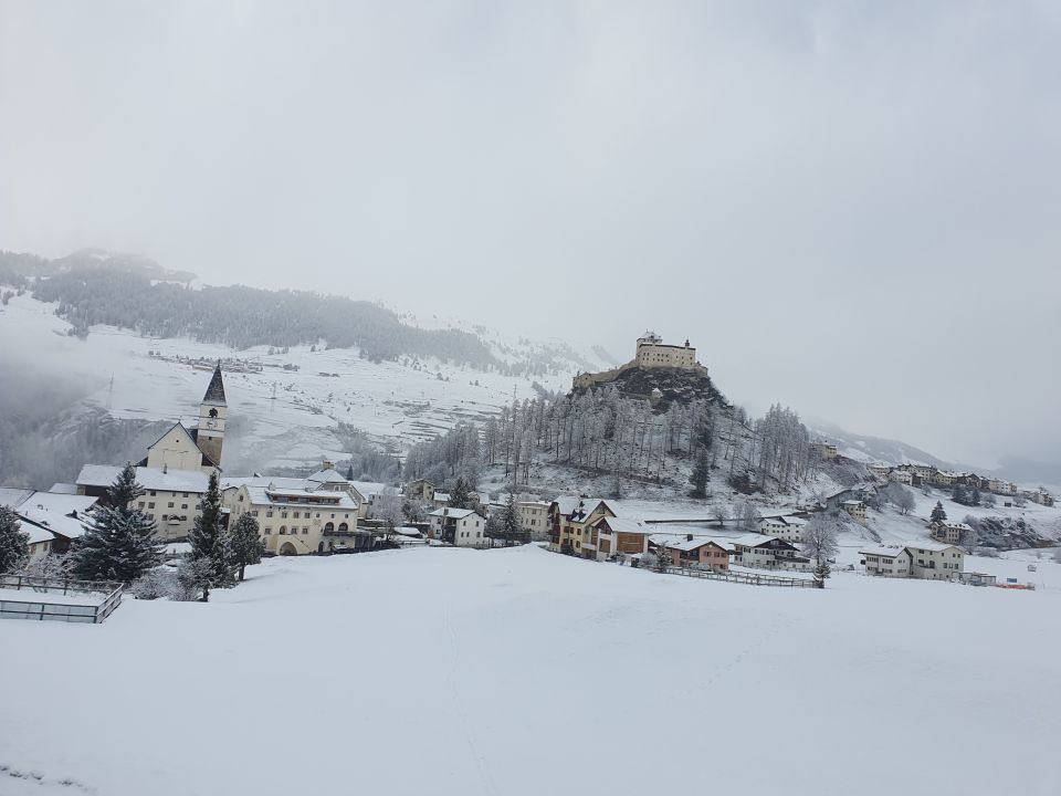 Zudem muss man sich zuoberst entscheiden, auf welcher Bank man sitzen möchte: Möchte man nach Scuol oder Guarda schauen? Ich habe die Bank nach Guarda gewählt, wohl auch wegen der Sonne.