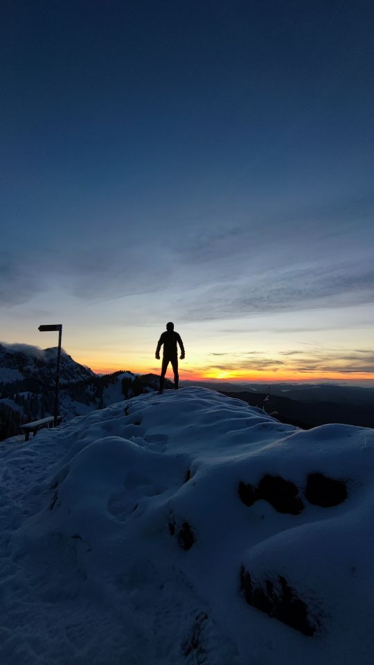 Ab Unter Honegg erster Schnee, 1cm, bis zum Gipfel zunehmend, max.10cm.