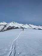 Im Wald Schneemangel (auf 1600M Ski's tragen). Oben gut mit Neuschnee