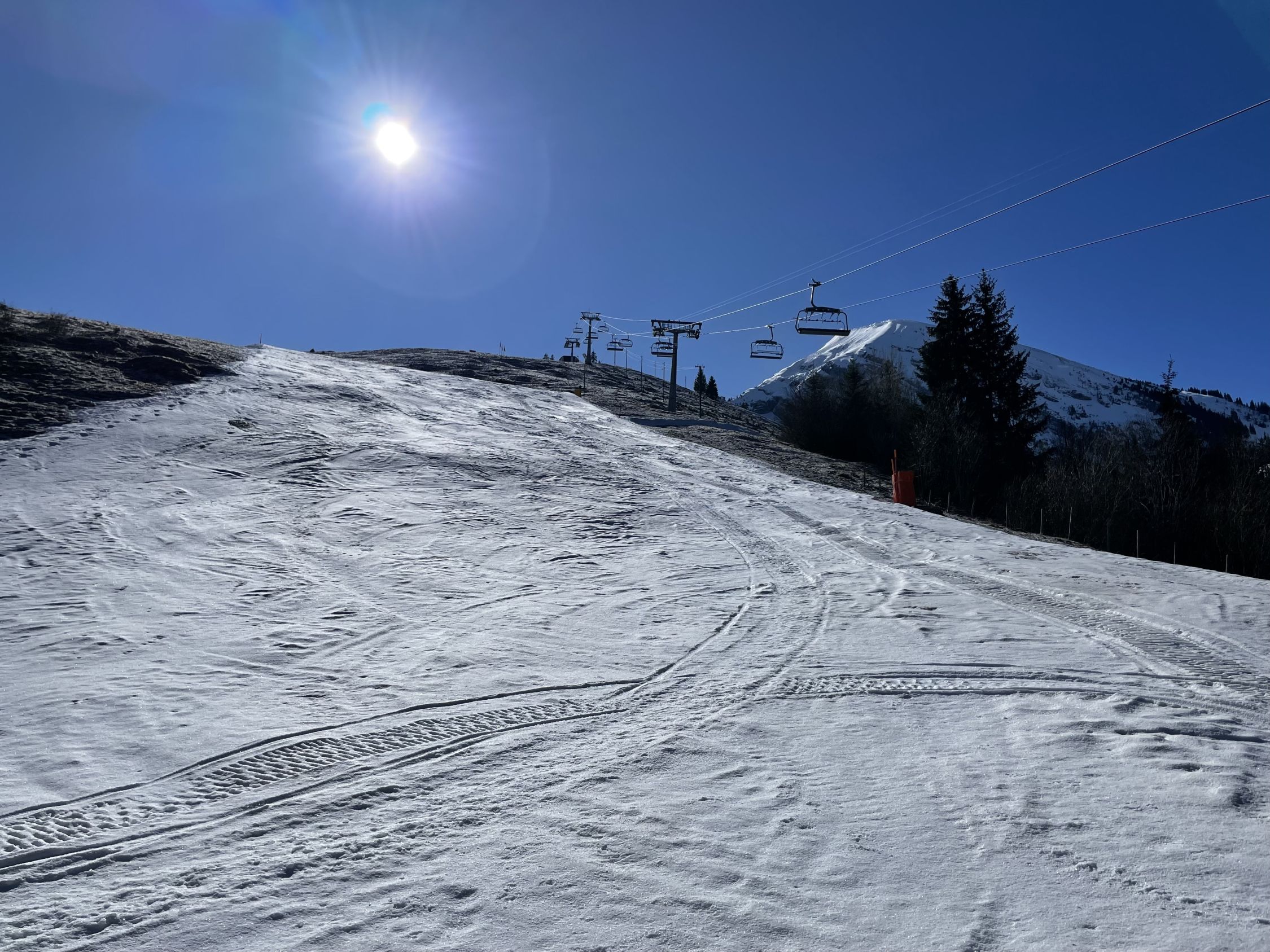 Entsprechend erst eisige Abfahrt, leicht besser, wenn man nach Westen ausweicht, aber im Prinzip war nur zwischen 2000 m und 1600 m angenehm zum Abfahren (und der Velopart).