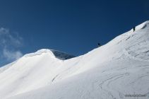 Abfahrt: 2x den Gipfelhang gefahren. Leicht gepresster Neuschnee, sehr schön zu fahren.
