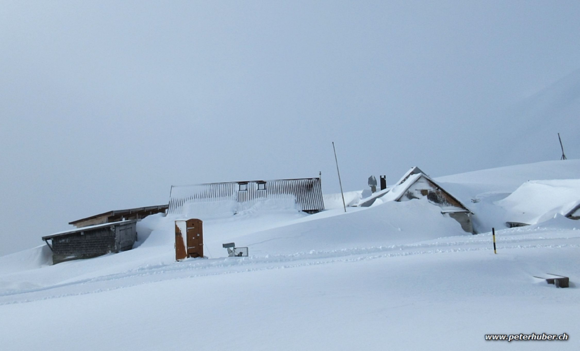 Heute fast windstill sodass die Bahn heute fahren konnte. Wechsel von Sonne, hohen Wolken und auch mal Nebelschwaden. In der letzten Woche hat es ziemlich Schnee gegeben sodass alles gut gedeckt ist. Bei einigen Kuppen schaut noch das Gras raus. Es hat zirka 5 cm Neuschnee in der letzten Nacht gegeben. Er ist stellenweise vom Wind gepresst.