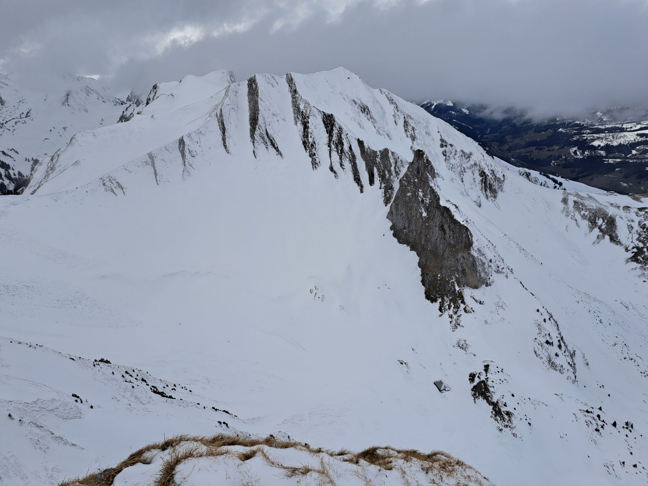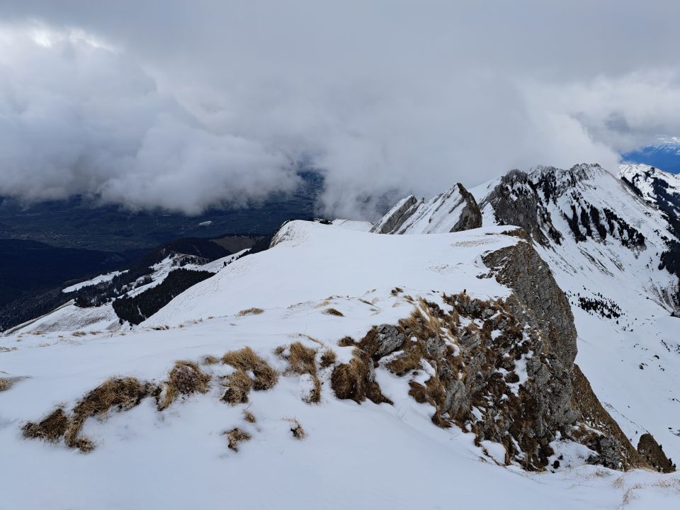 Auch der Fussaufstieg direkt am Grat praktisch Aper mit einigen Schneeflecken aber niergends Eis sehr gut zu gehen.