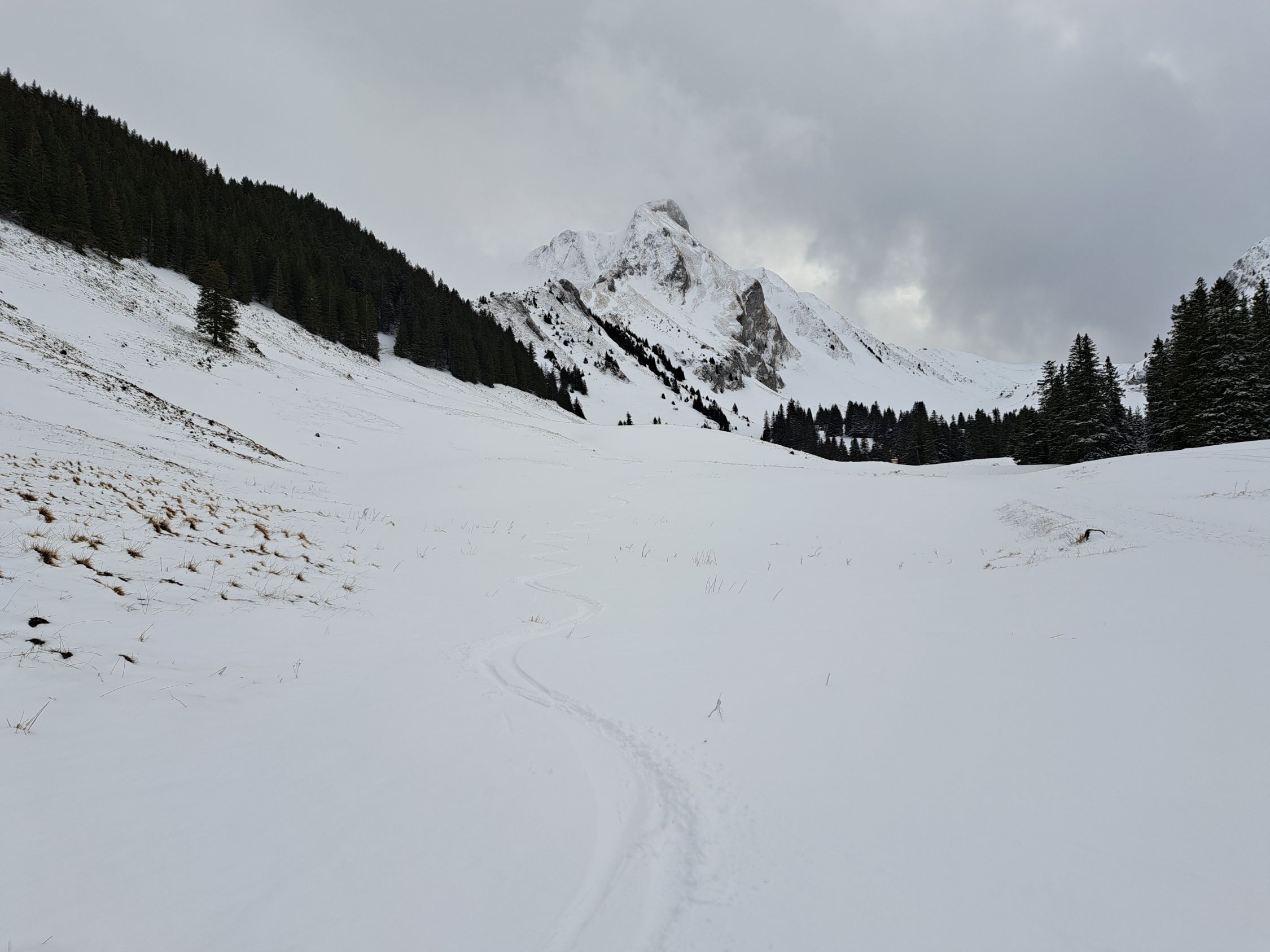 Aufstieg zum Gantrisch über Sommerweg kein problem da Neuschneee auf dem Weg bis Skidepot.